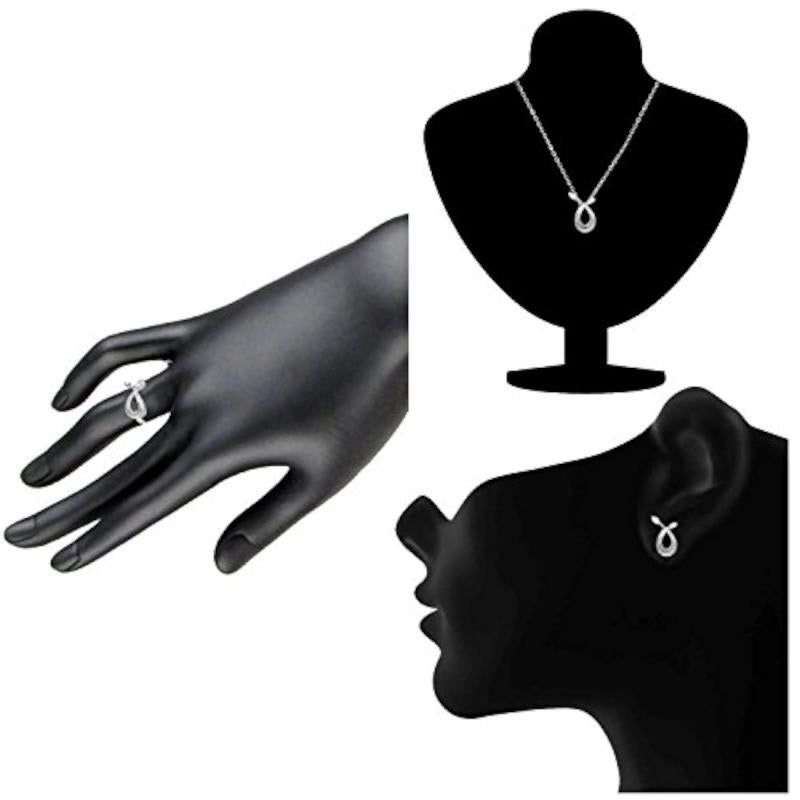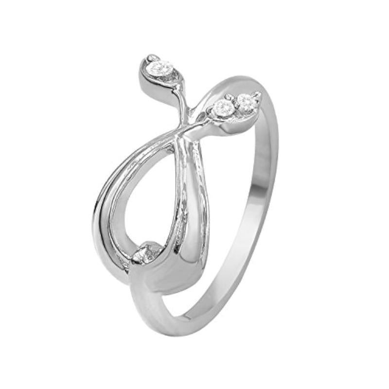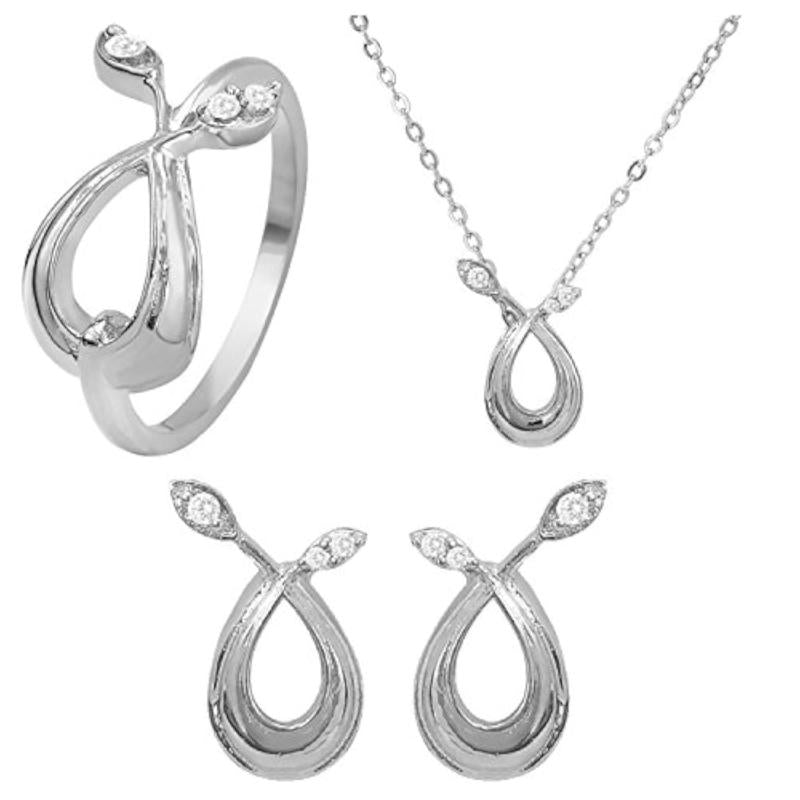 CZ Twin Leaf Rhodium Pendant Set & Ring Combo