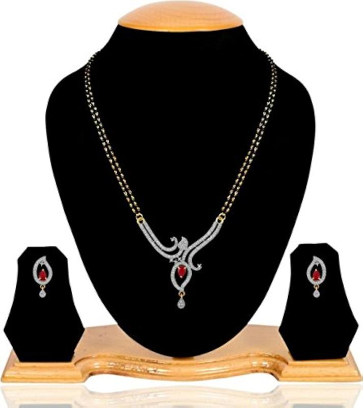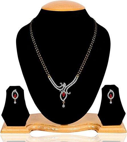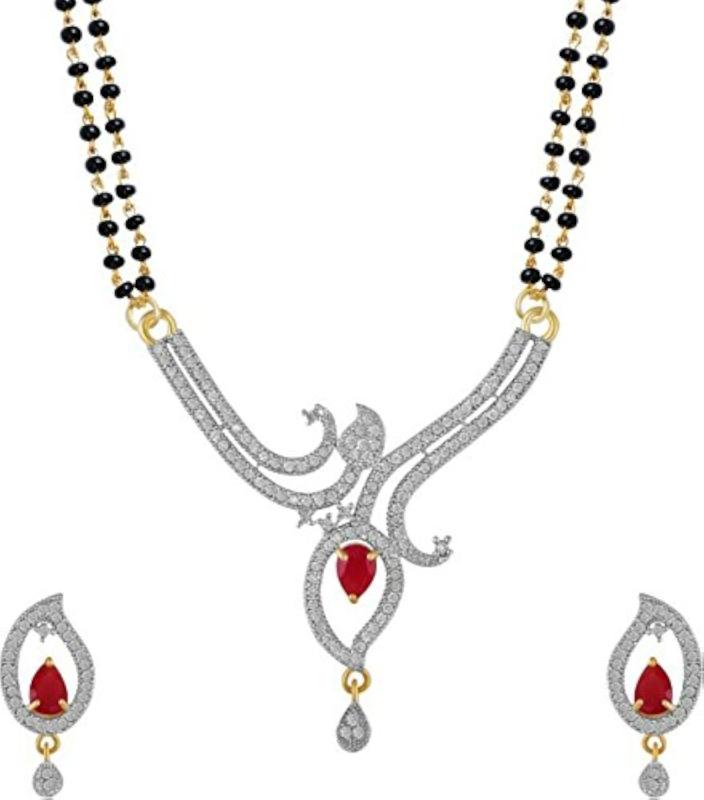 This elegant diamond plated mangalsutra pendant set comes with a matching chain and earrings. Perfect for special occasions.