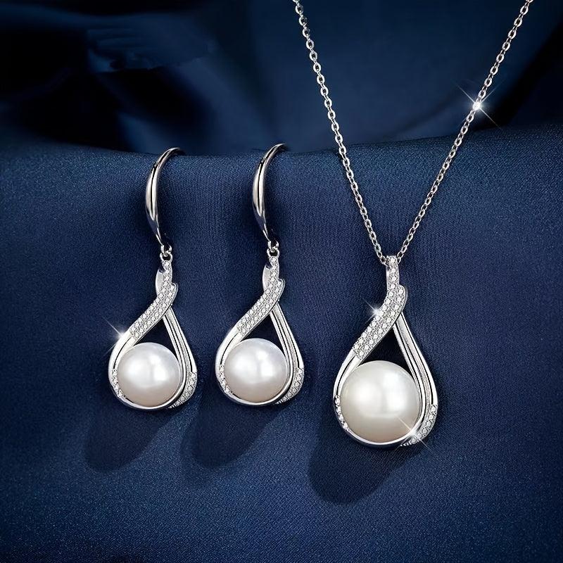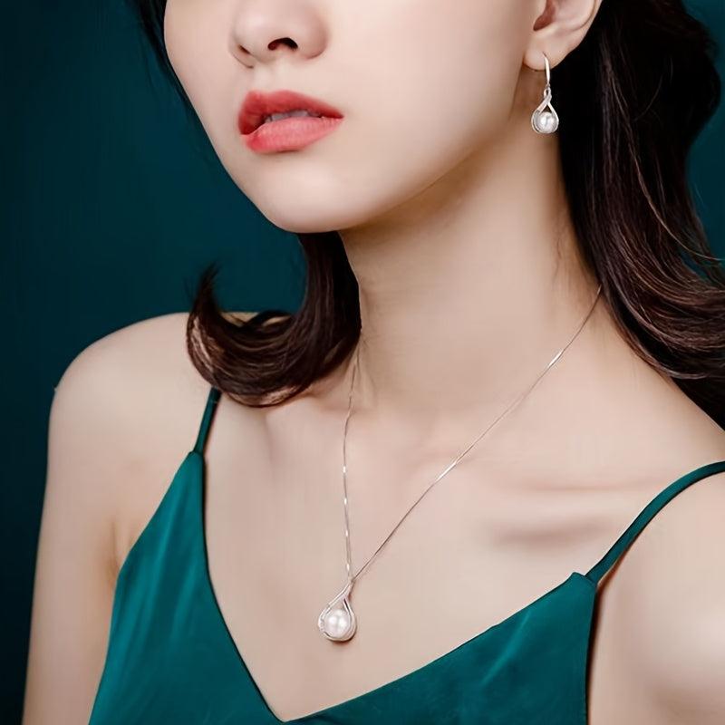 Complete your elegant look with this stunning earrings and necklace set. Perfect for weddings, engagements, and parties.
