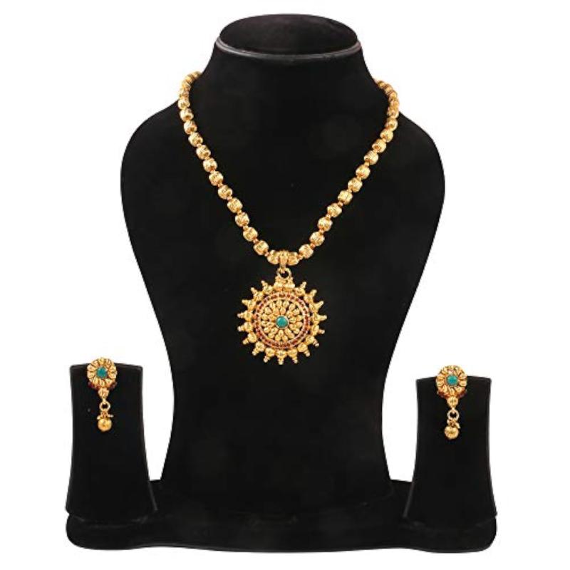 Complete your bridal look with this stunning plated wedding necklace set that includes matching earrings.
