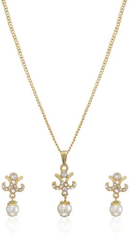 Adorn yourself with this exquisite jewellery set featuring an elegant necklace and matching earrings.