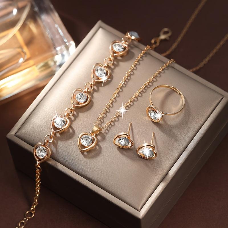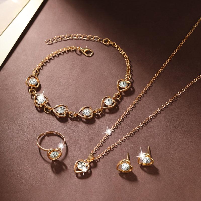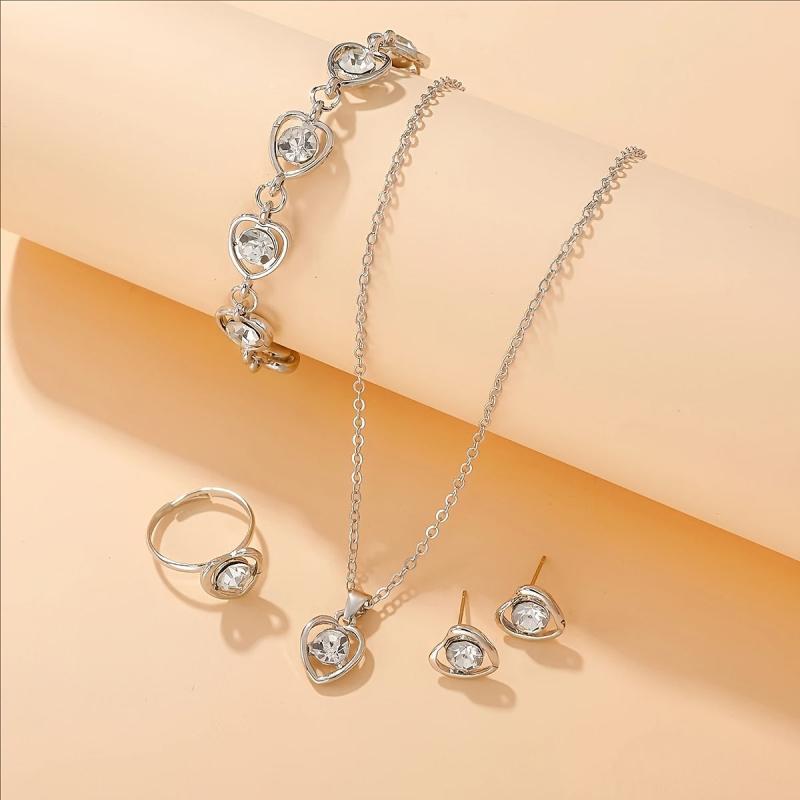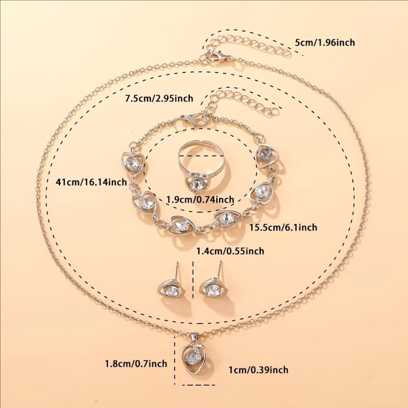 This stylish set includes earrings, necklace, ring, and bracelet, making it a perfect gift for students, office workers, or mothers. The set is elegant and versatile, suitable for various occasions.