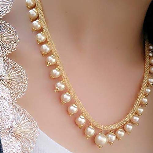Enhance your wedding look with this exquisite pearl choker necklace set. Perfect for a touch of elegance and sophistication on your special day.