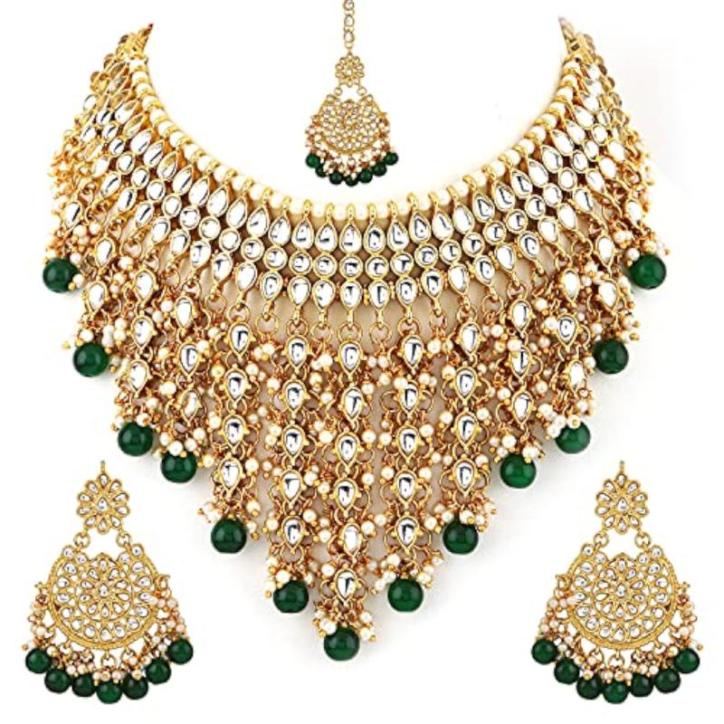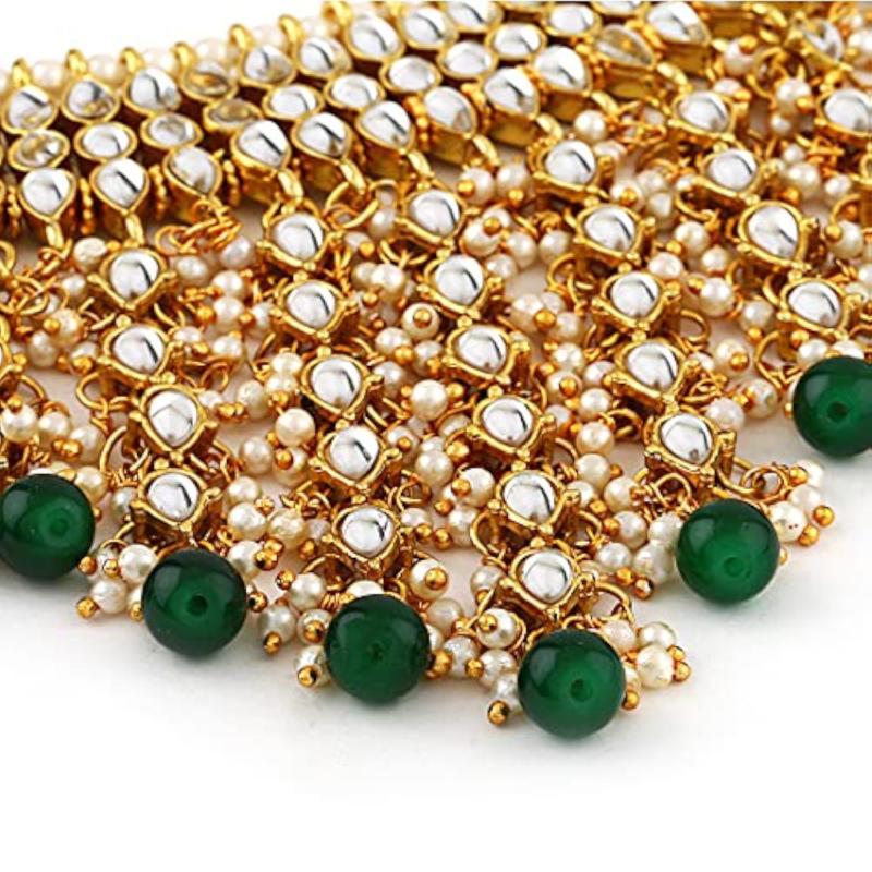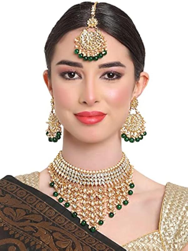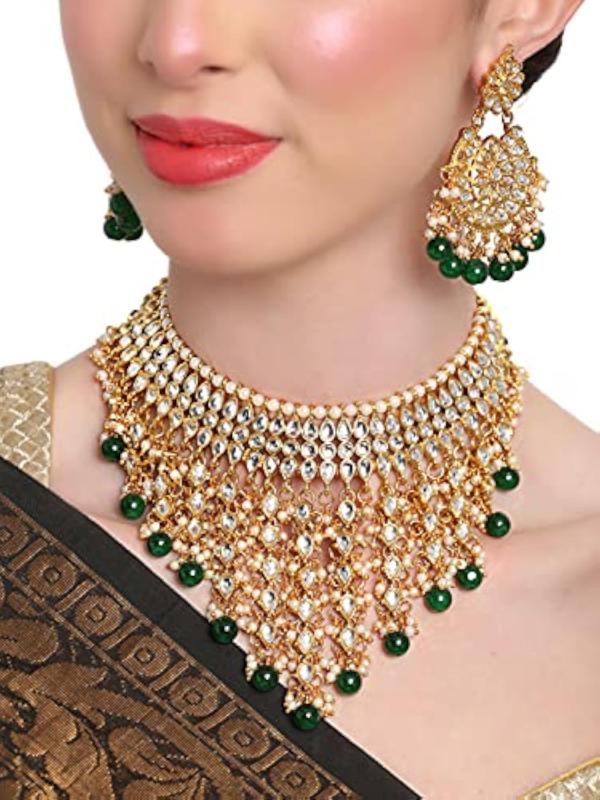 Add a touch of sophistication to your look with this traditional pearl and kundan necklace set.