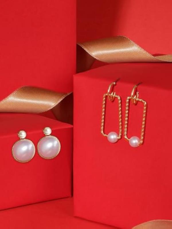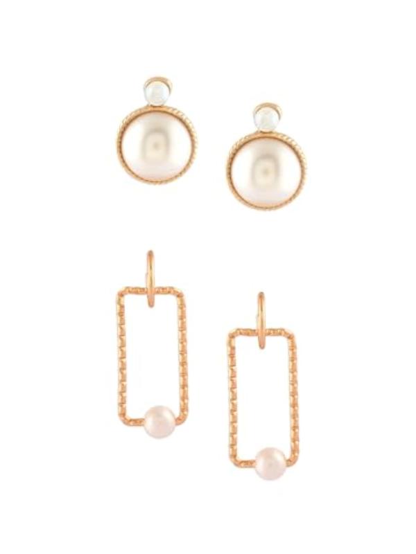Elegant set of 2 tone statement earrings featuring contemporary design with tassels and drops. Perfect for adding a touch of glamour to any outfit.