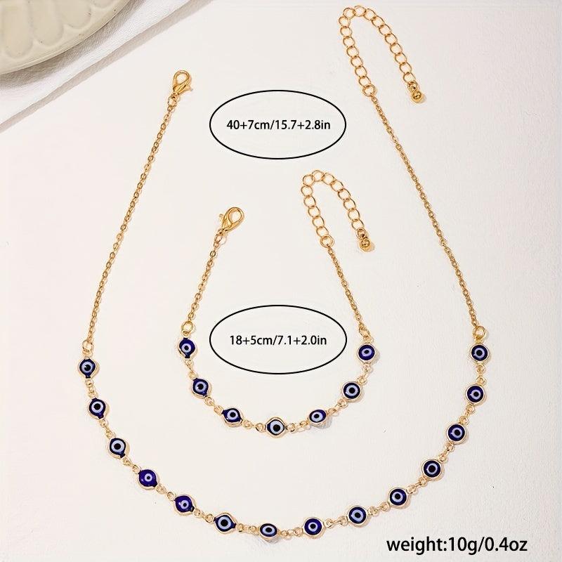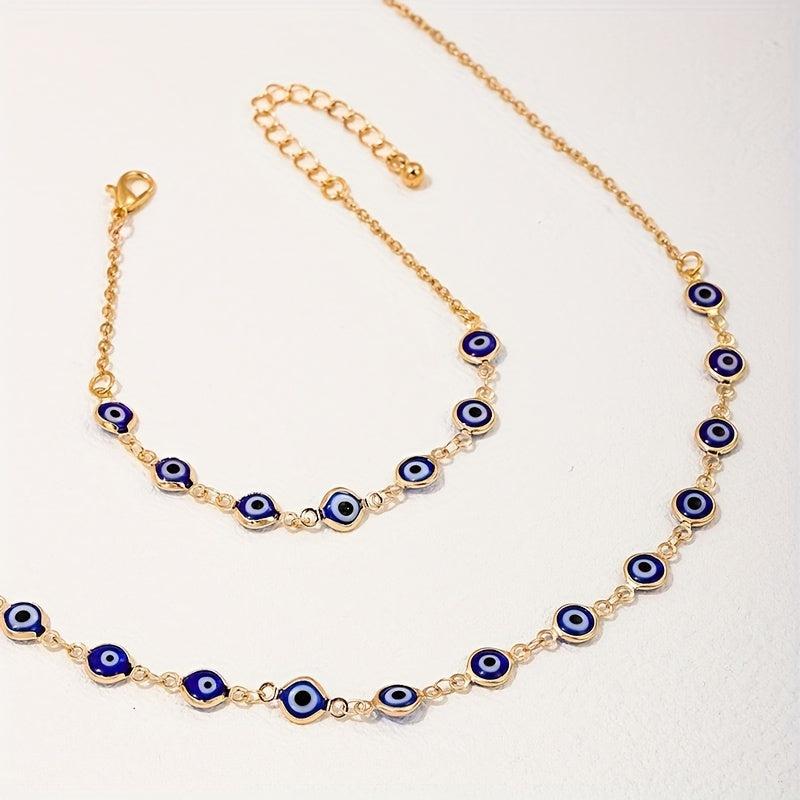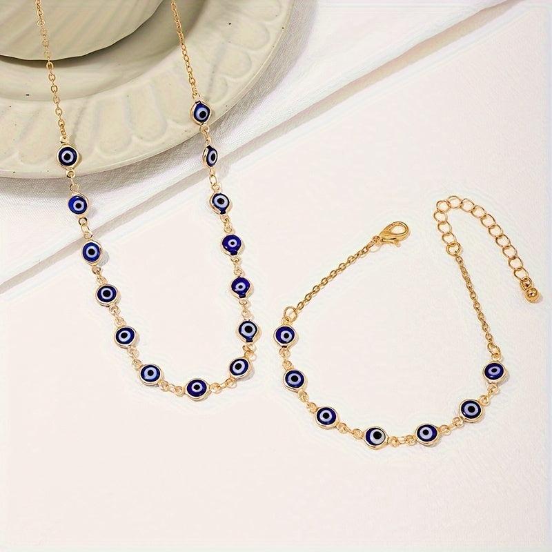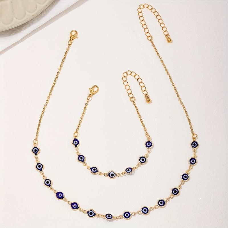 Adorn yourself with this chic European style eye necklace and bracelet set that adds minimalistic charm to your look.