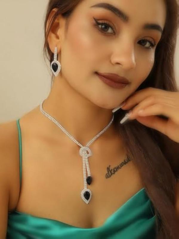 Elegant and stylish crystal diamond necklace set for a glamorous look.