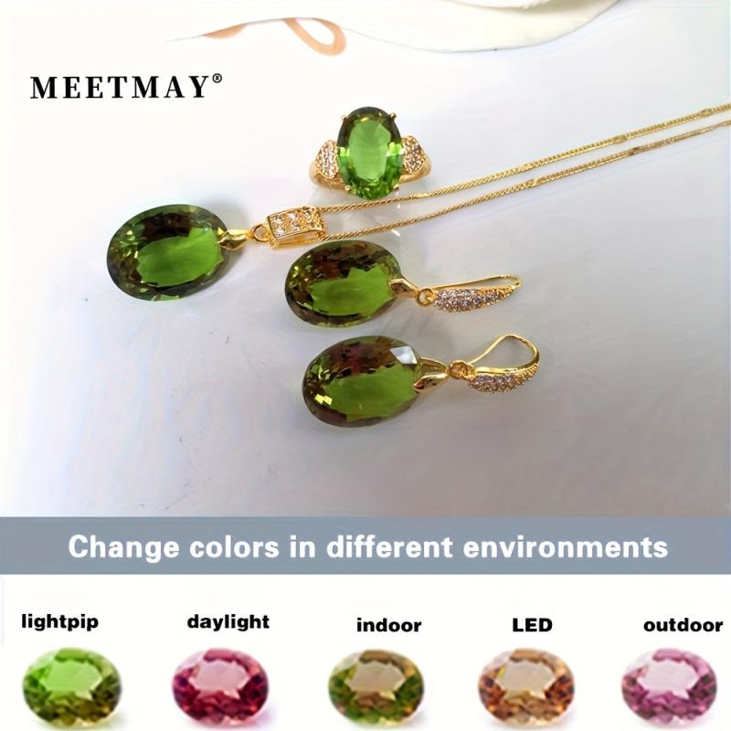Enhance your style with this synthetic changing faux gemstone sultanite jewelry set featuring an oval design. This 4-piece set adds a touch of elegance and sophistication to your look.