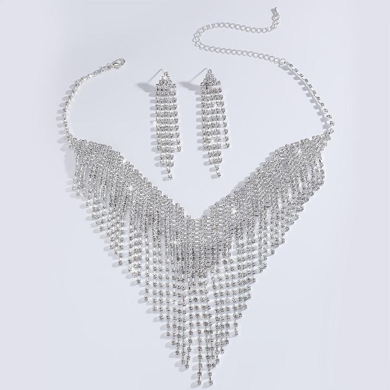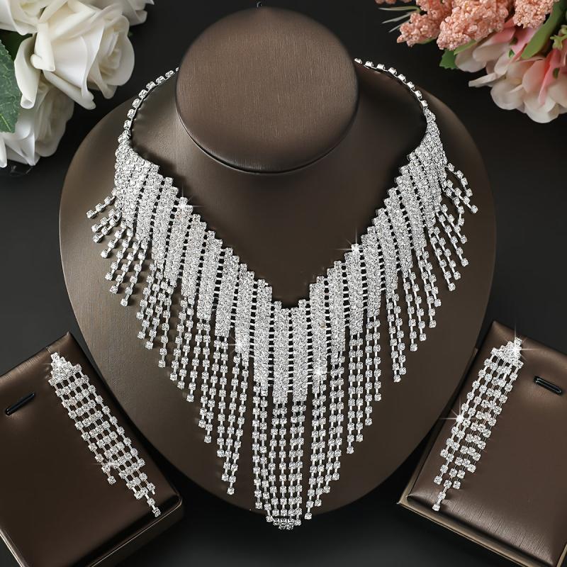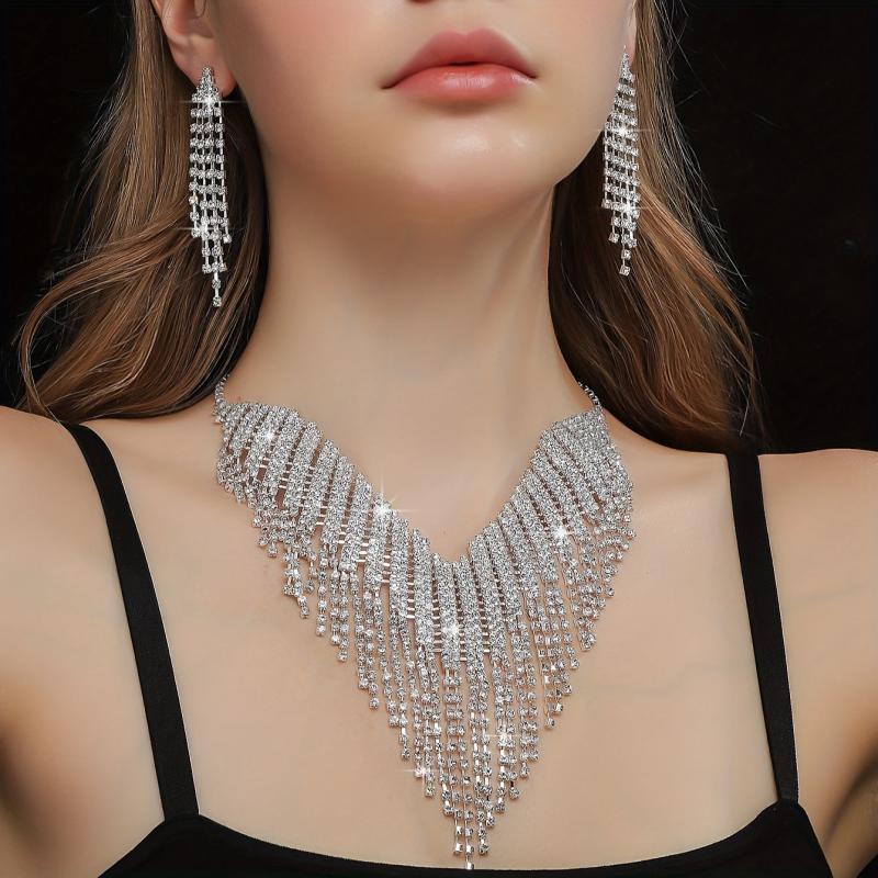 Enhance your style with this stunning 2-piece set featuring heavy earrings and a necklace. Perfect for weddings, banquets, and special occasions.