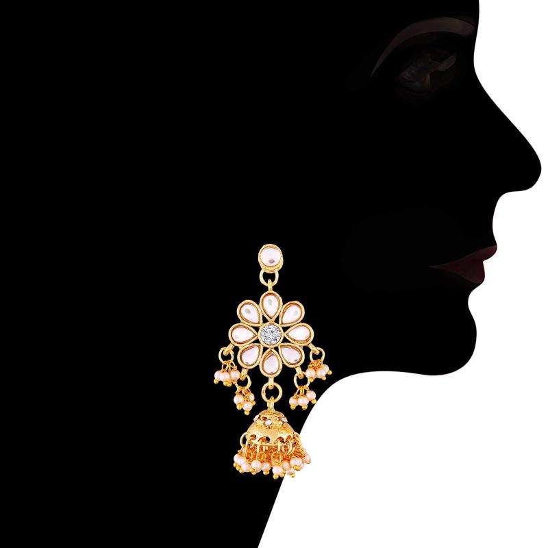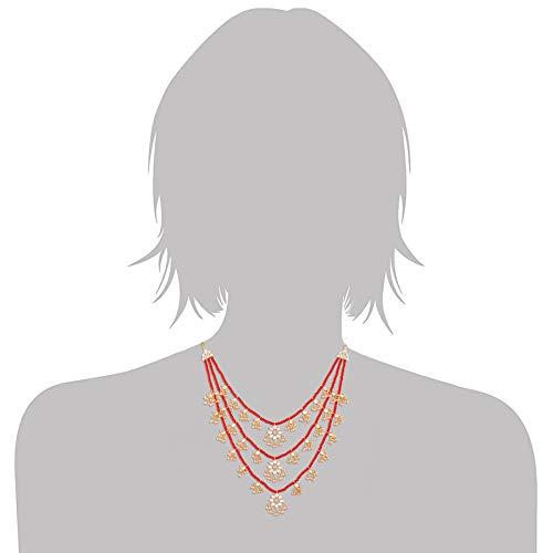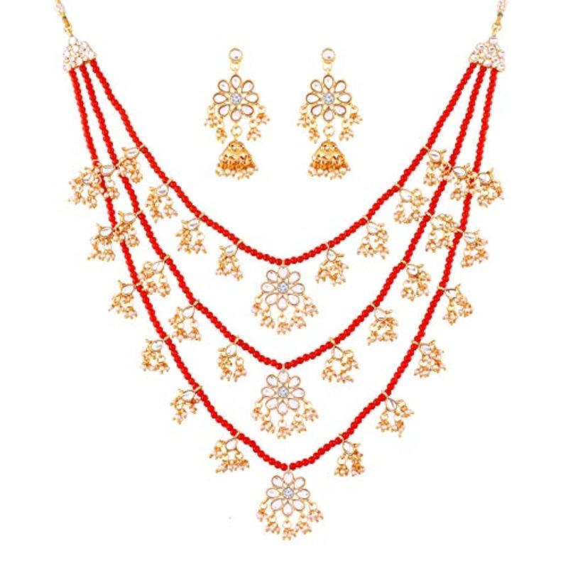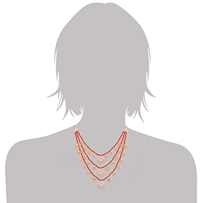 Elegantly designed necklace with layered floral kundan and pearl beads.