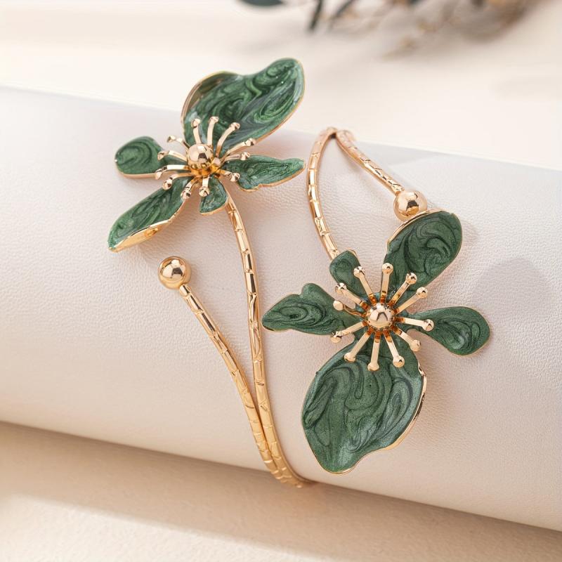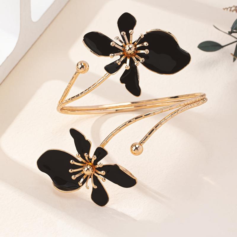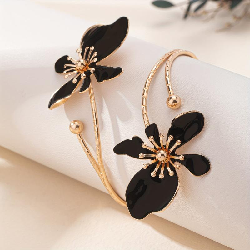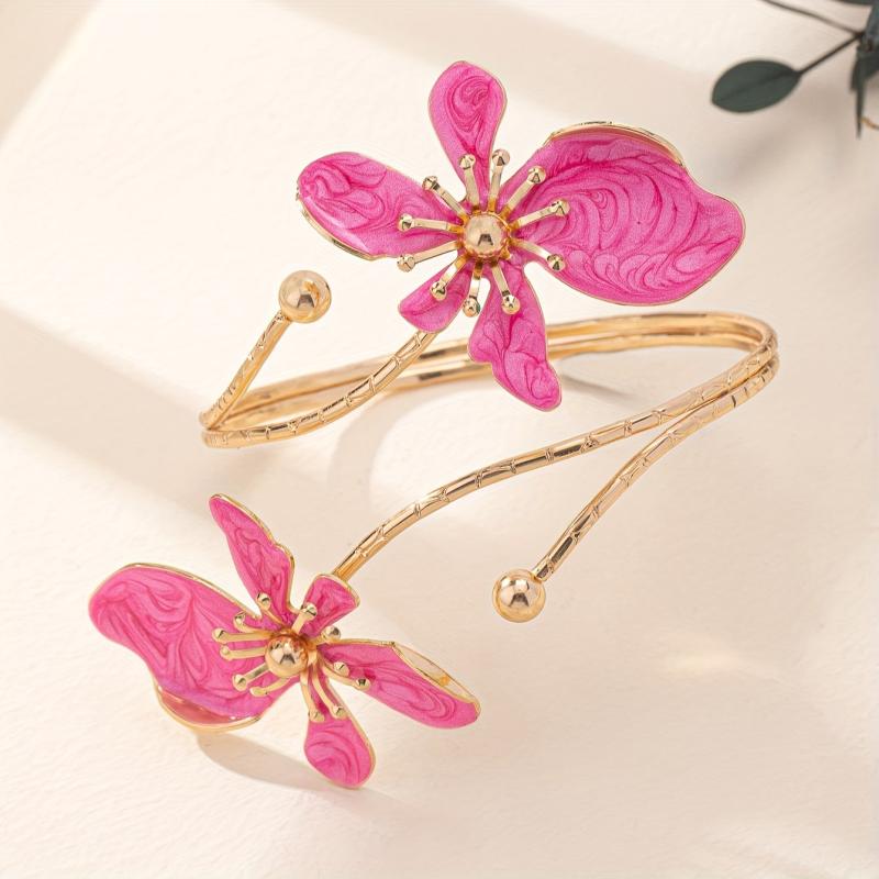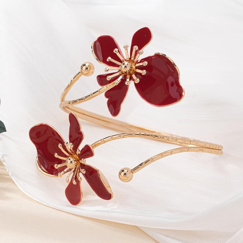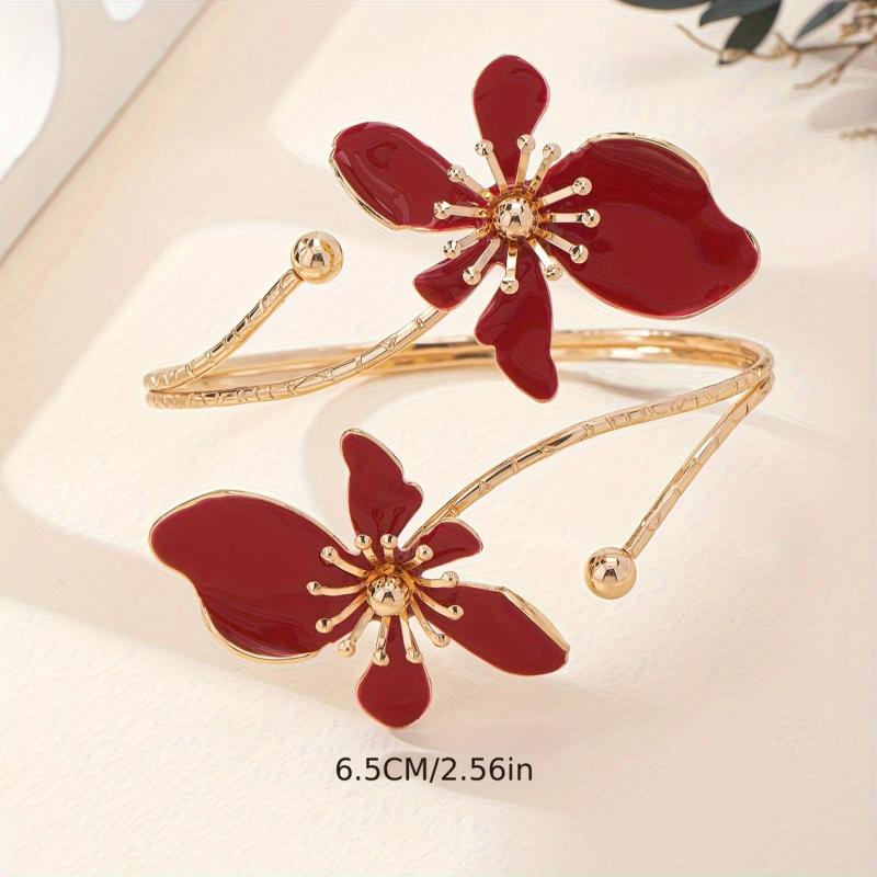 Add a pop of color to your outfit with this vibrant red and golden floral open cuff bracelet. Perfect for daily wear, parties, and vacation accessorizing.