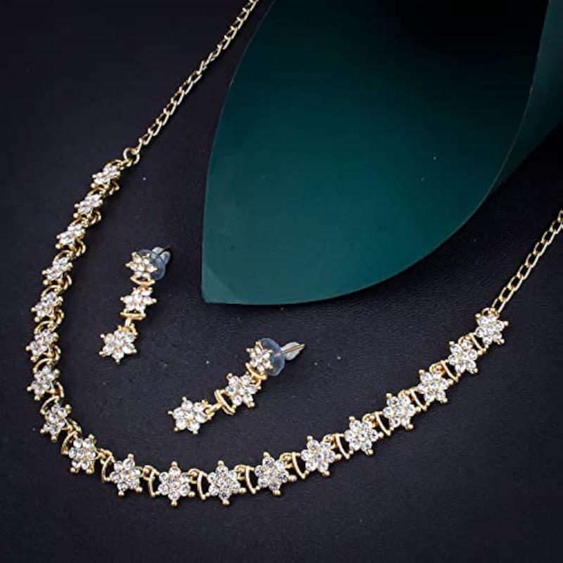 Elegant choker necklace set featuring a floral design with plated finish.