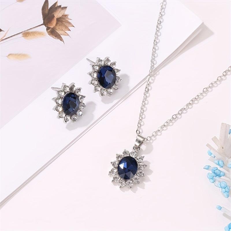 Elevate your style with this fashionable set featuring a royal starry sky design. The set includes a sunflower necklace and earrings adorned with rhinestones. Perfect as a gift or to add a touch of elegance to your outfit.