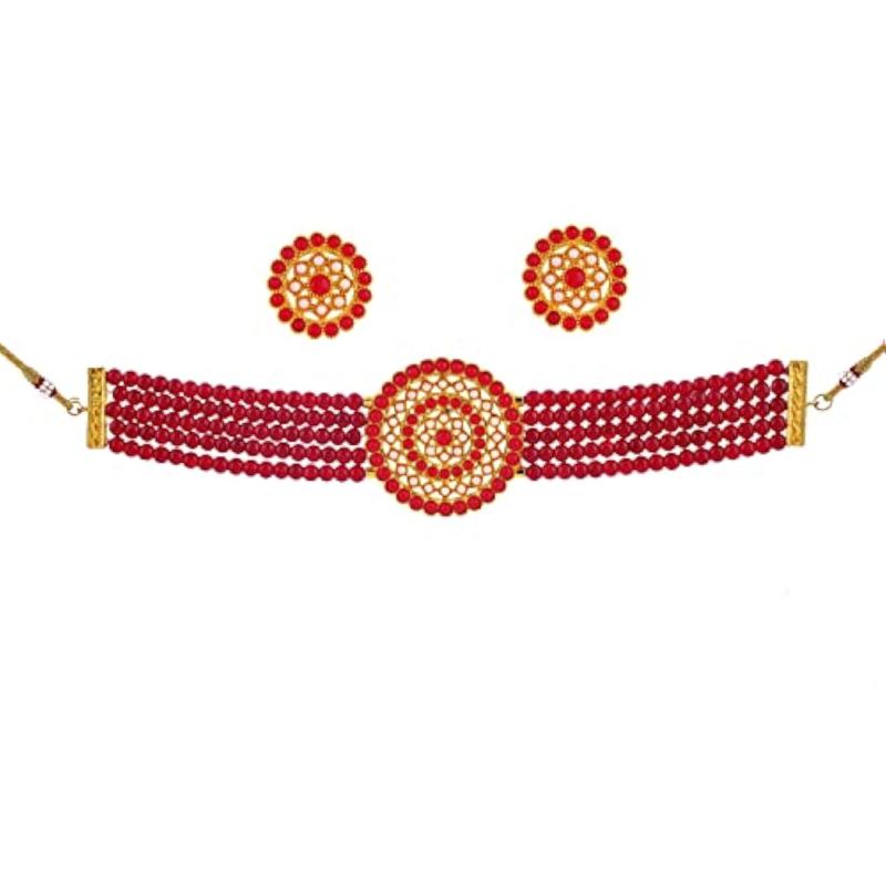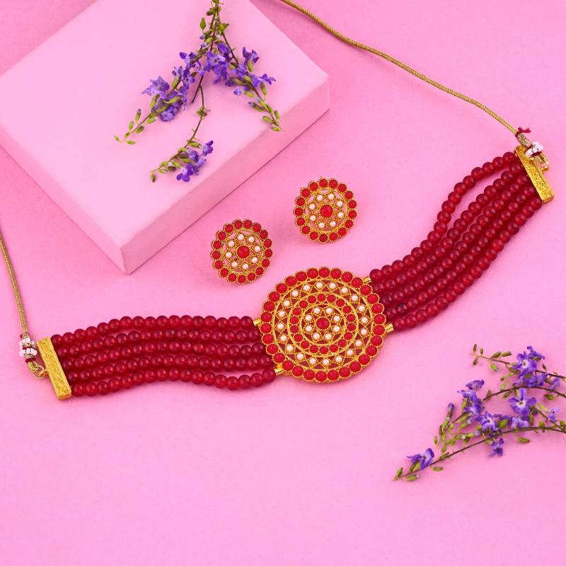 Elegant and charming plated pearl choker necklace with matching earrings for a sophisticated look.