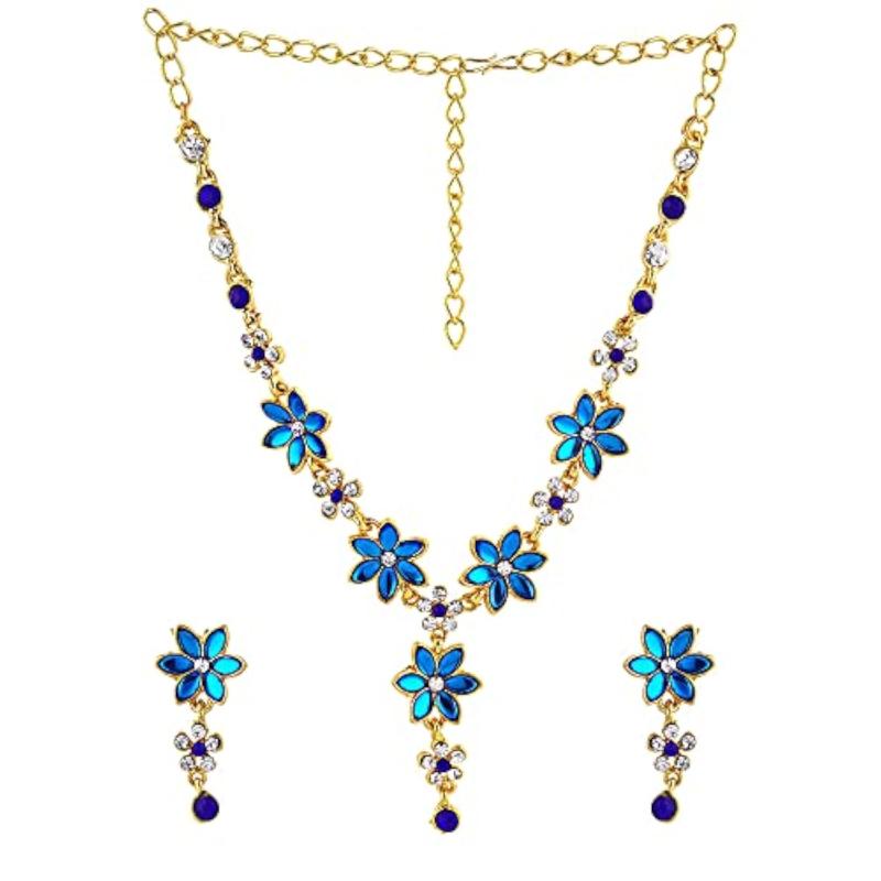 This exquisite necklace set features a royal leaf design with Austrian diamond detailing. Perfect for adding elegance to your outfit.
