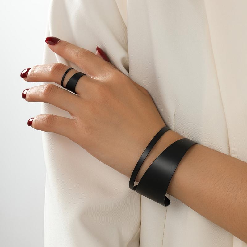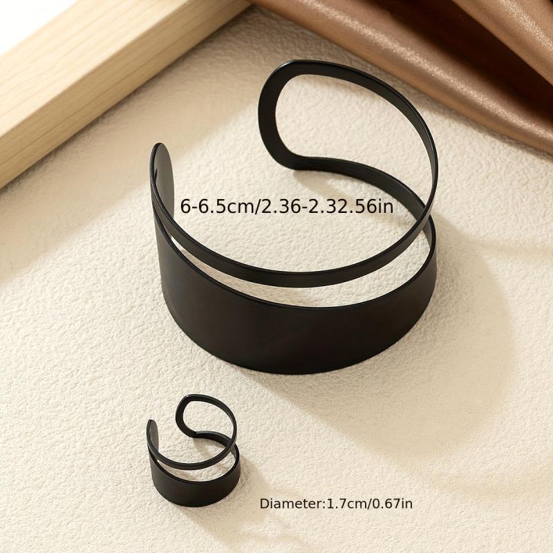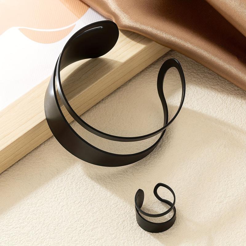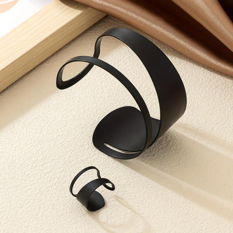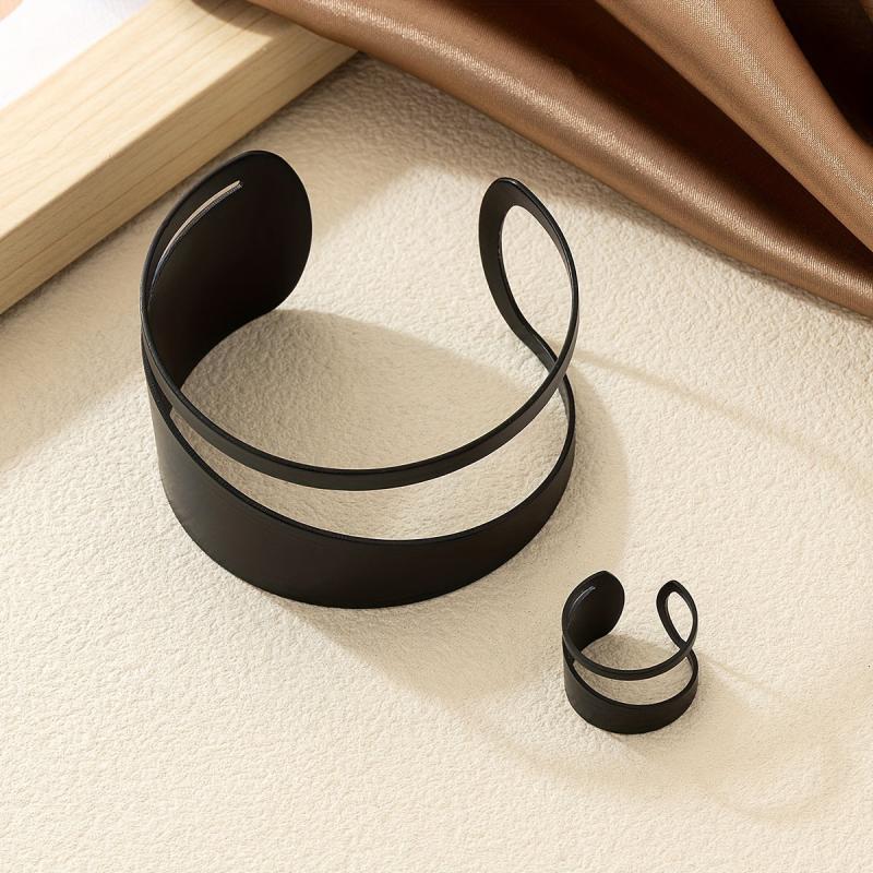 This vintage iron cuff and ring set features a geometric irregular design, making it a fashionable unisex accessory for daily wear. The 2-piece set is made without plating or mosaic materials, ensuring durability and a unique look for all seasons.