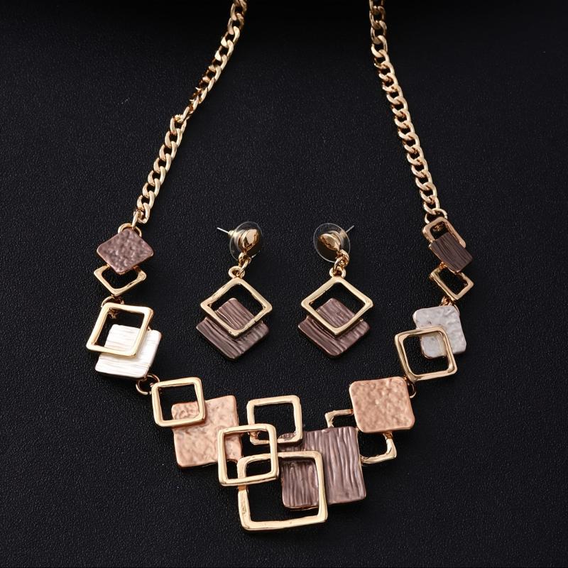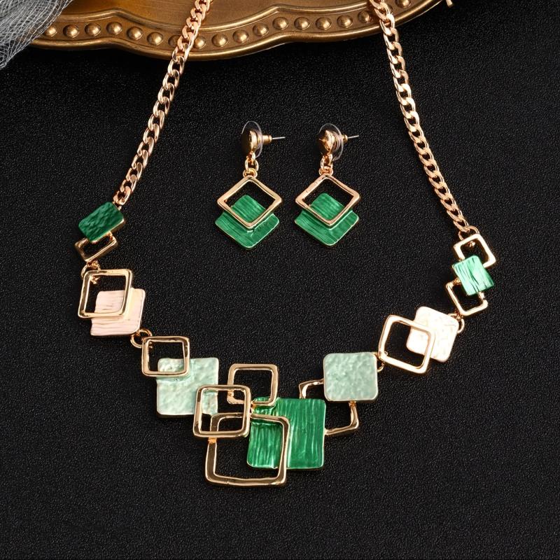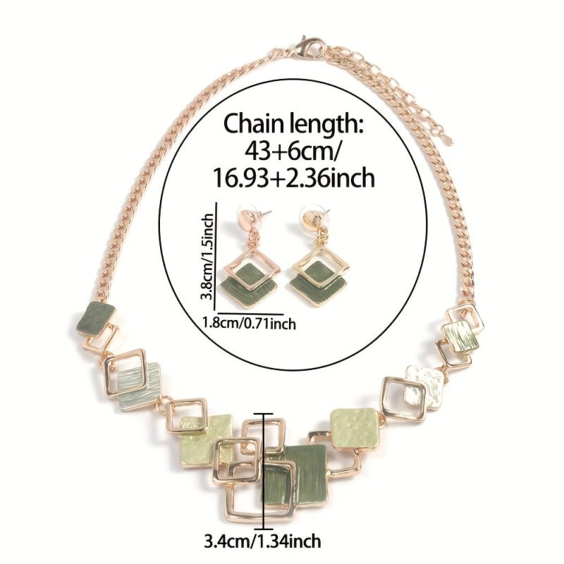 This 2pcs set of women's jewelry features a retro bohemian style with geometric rhombus design. Made of zinc alloy and artificial drops, perfect for daily wear or holiday outfits.