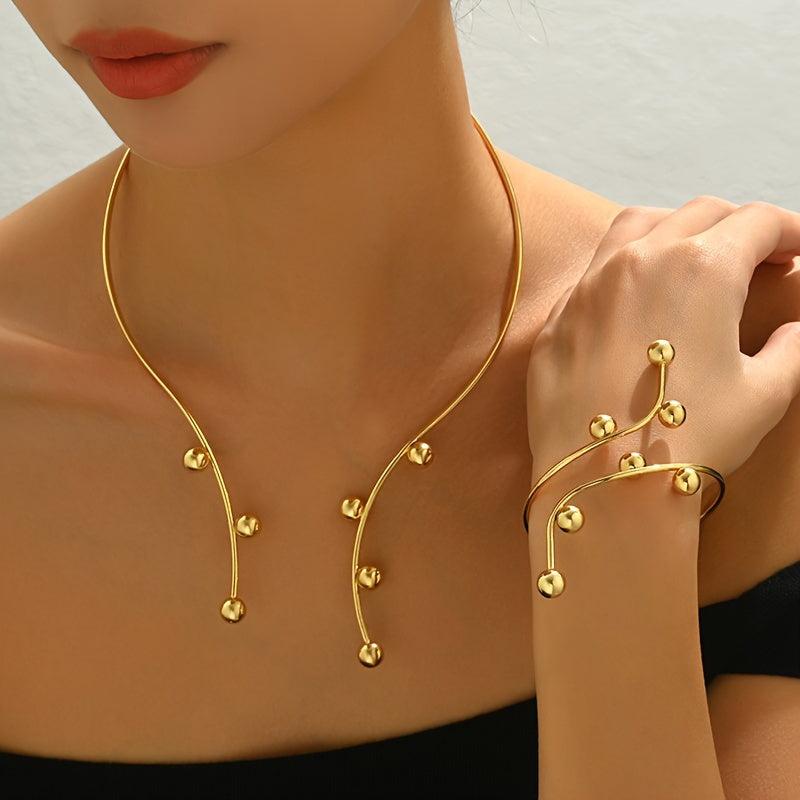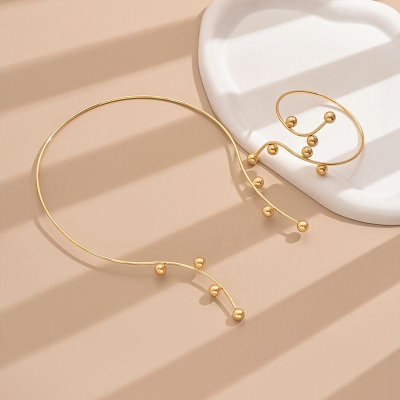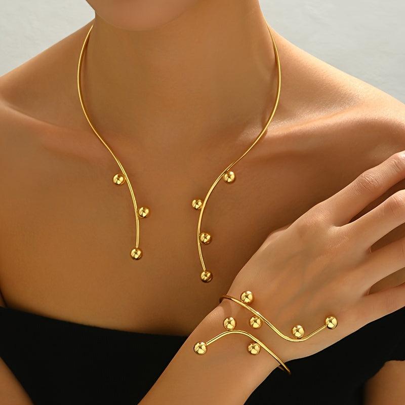 Elegant and eye-catching bracelet necklace featuring an exaggerated geometric sphere openwork design, perfect for women who love statement jewelry.