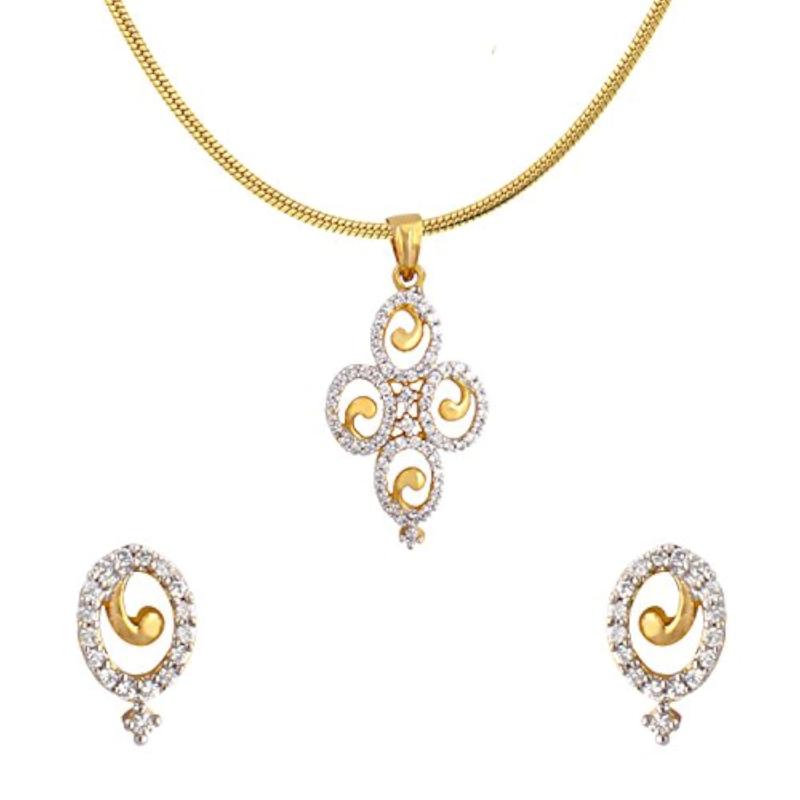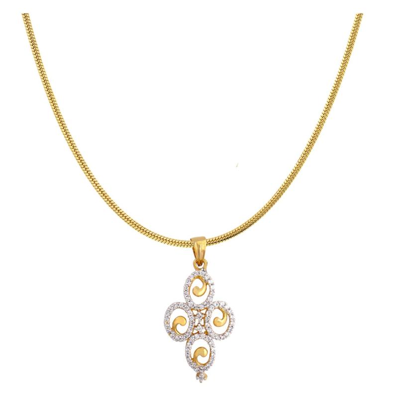 Elegant pendant set with circular drop design, plated in lustrous gold.