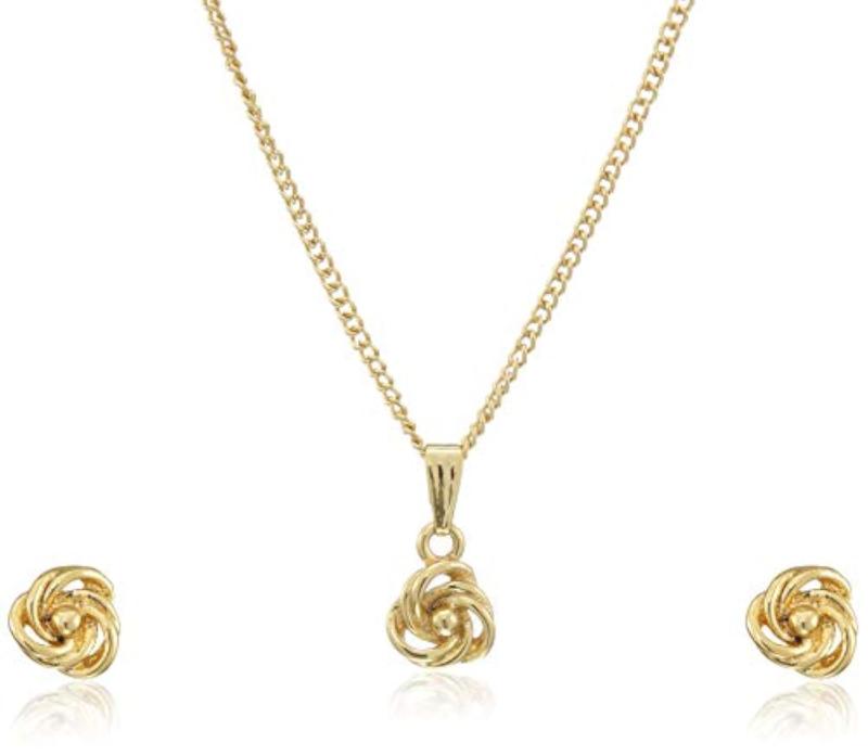 This exquisite necklace set features a stunning gold plated design that adds a touch of elegance to any outfit.