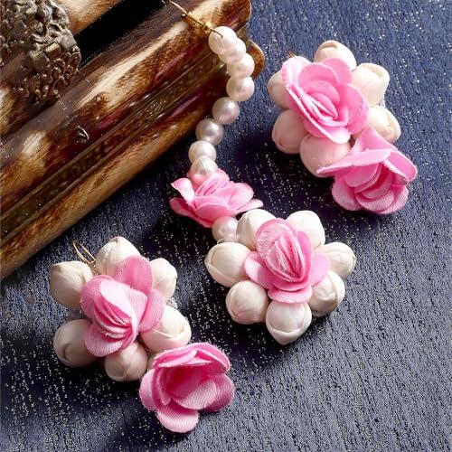 Exquisite gold-plated MaangTikka set with pearls and Gota Patti flowers. Perfect for haldi, mehandi, or special occasions.