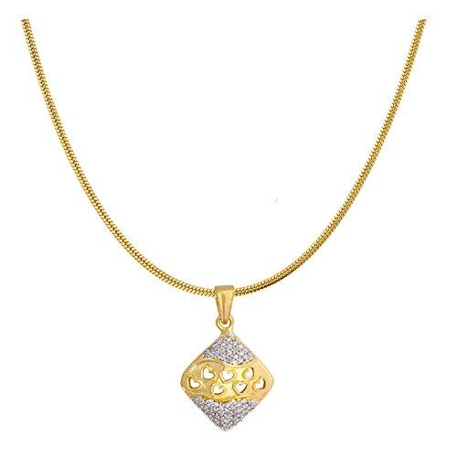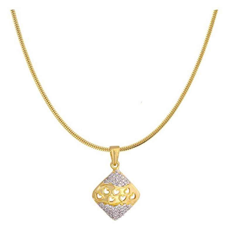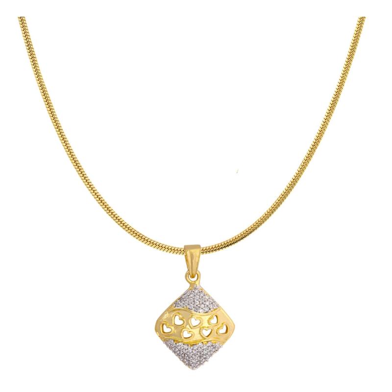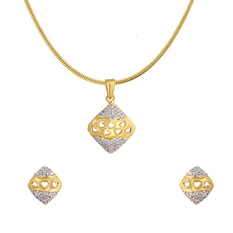 Elegant gold plated pendant set featuring a rhombus design with a touch of love. Perfect for adding a chic and stylish accessory to your outfit.