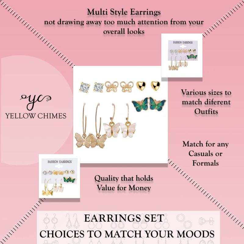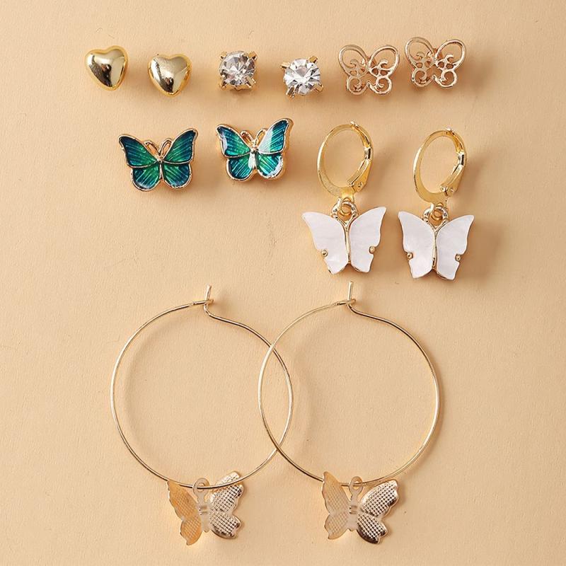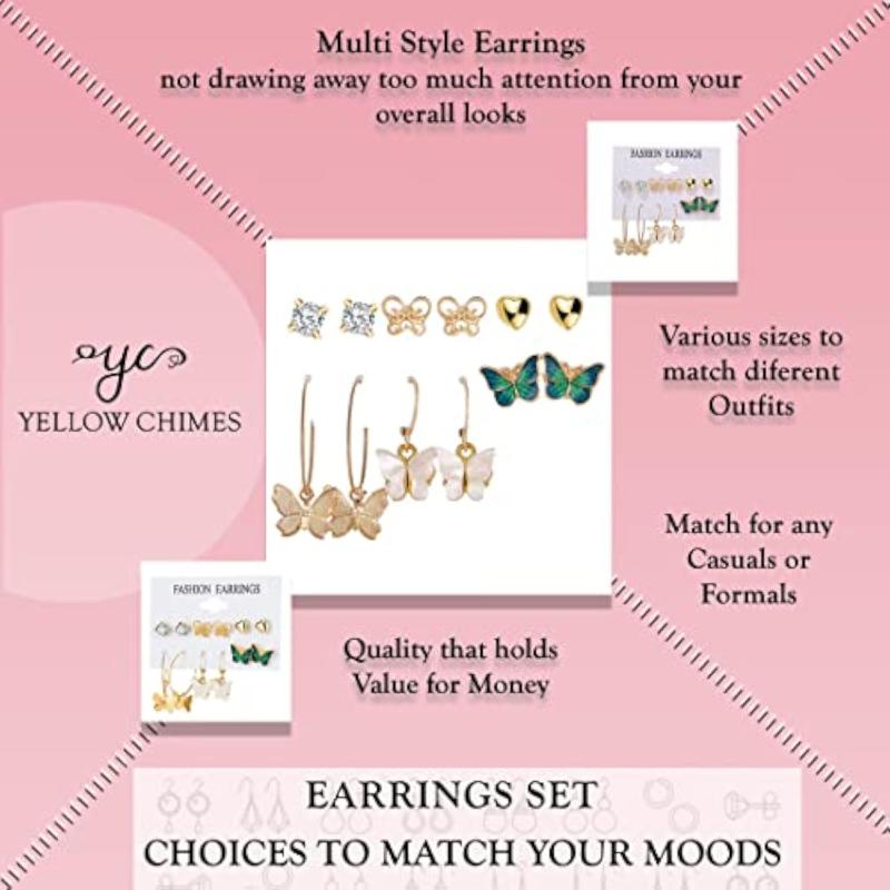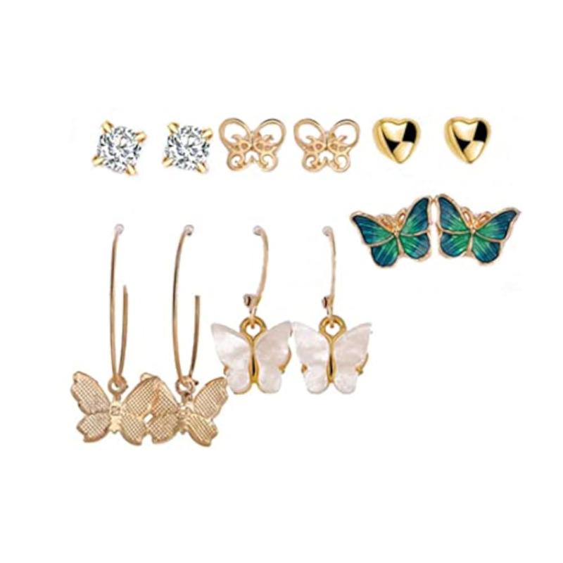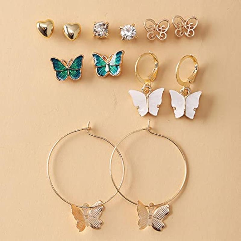 This set includes 6 pairs of earrings, featuring a mix of butterfly studs and hoop earrings, perfect for birthdays and special occasions.