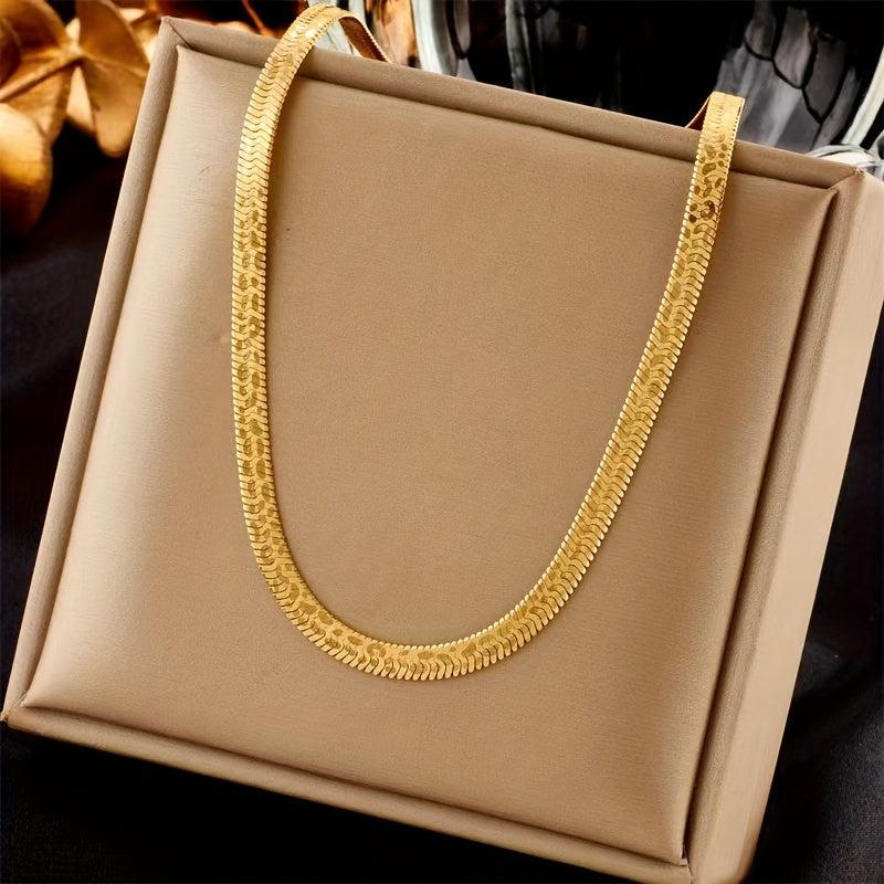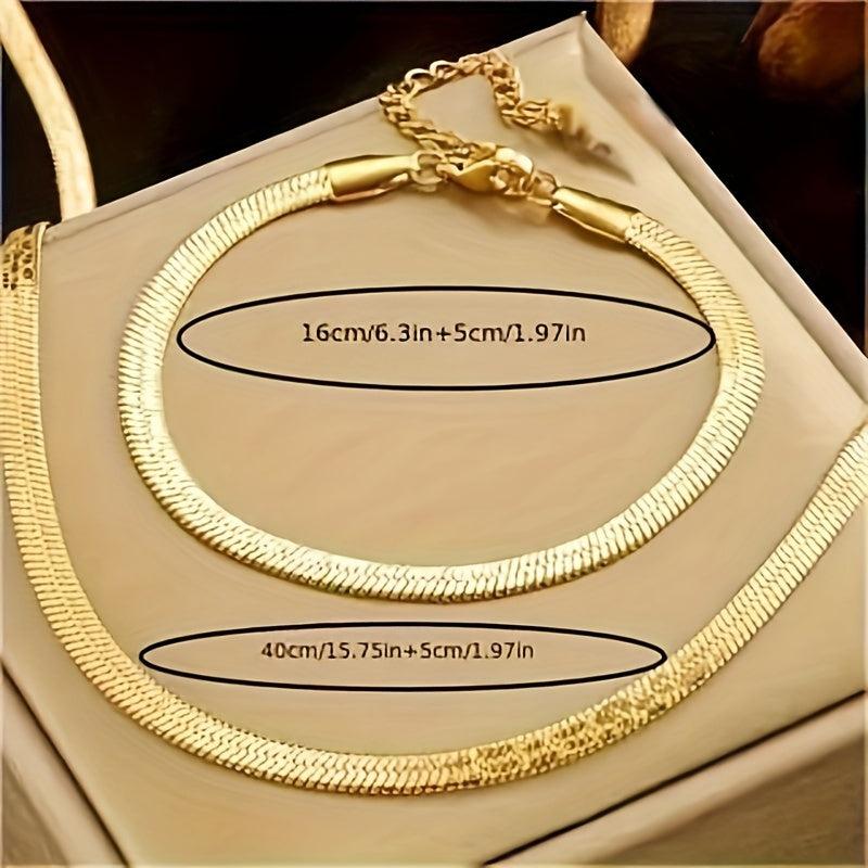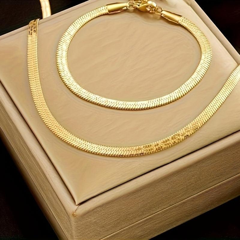 Elegant 2pcs titanium steel accessory set with a French retro style. Versatile gift for women, featuring a braided print design and golden plated finish.