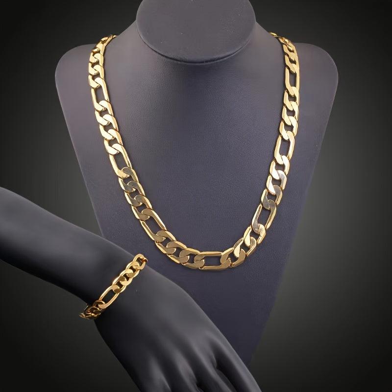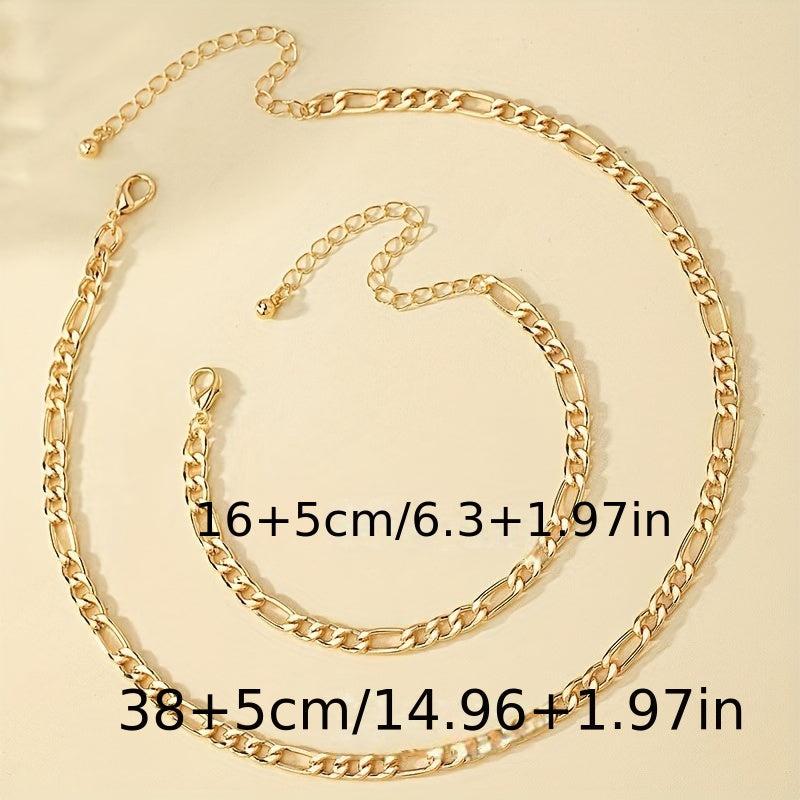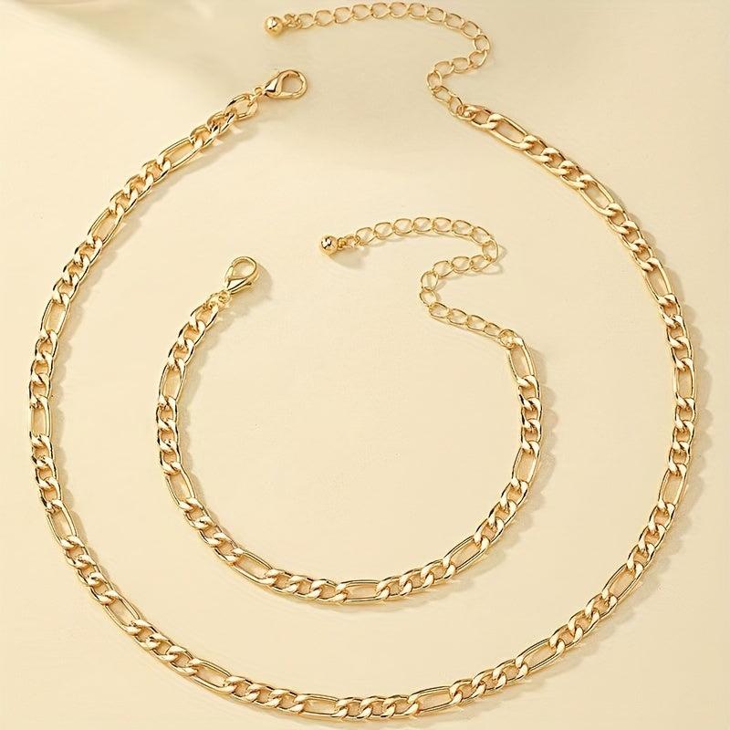 This 2-piece jewelry set in golden tone includes a necklace and bracelet, perfect for parties, vacations, and as a gift for mothers. Made of high-quality stainless steel, this set is stylish and durable.