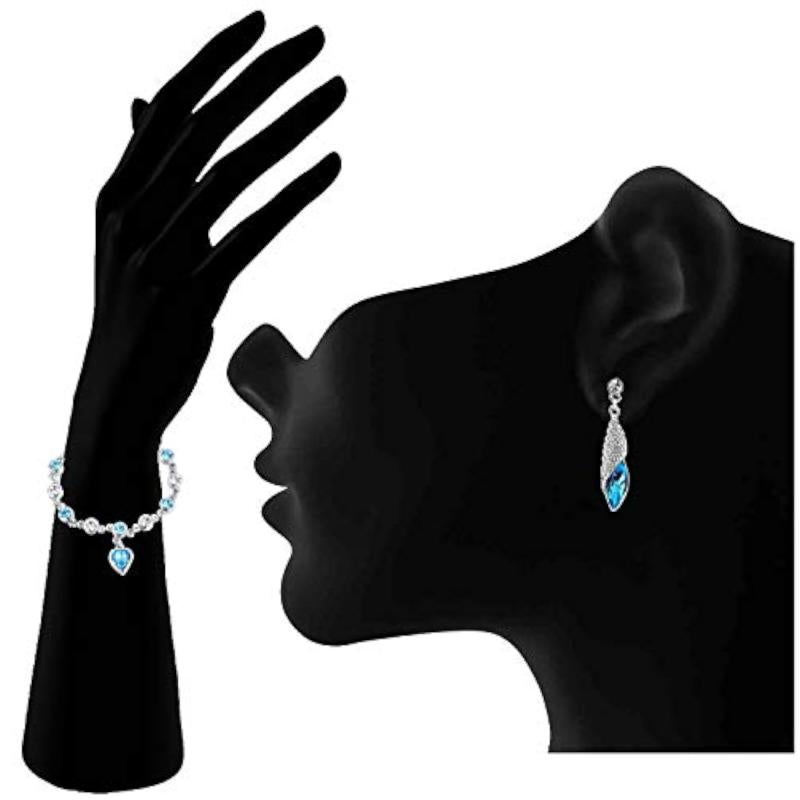 Elegant combo set featuring a heart bracelet and dangler earrings with crystal accents.