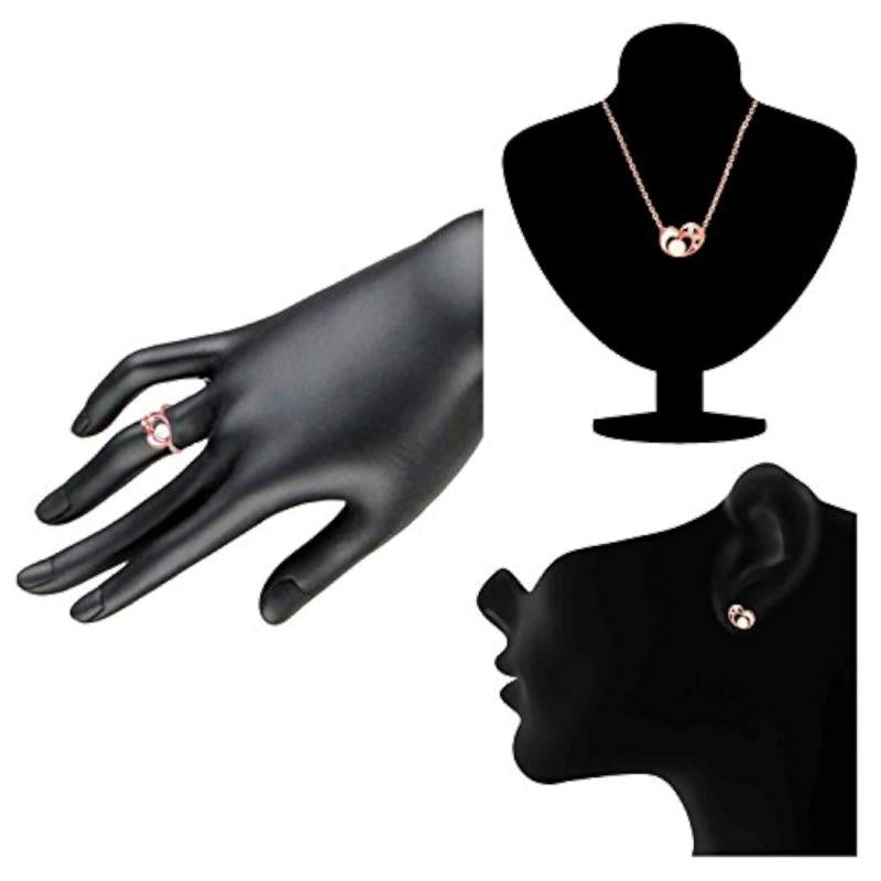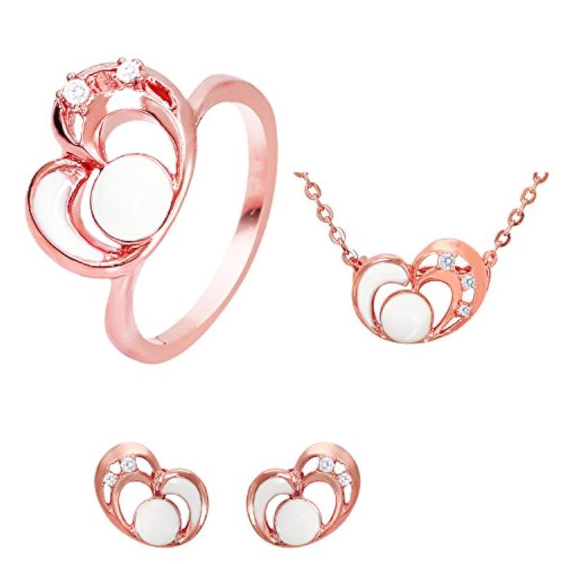 Elegant and charming jewelry set featuring a heart-shaped CZ pendant with matching ring, both rose plated for a stylish look.