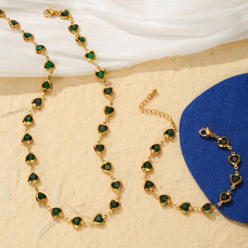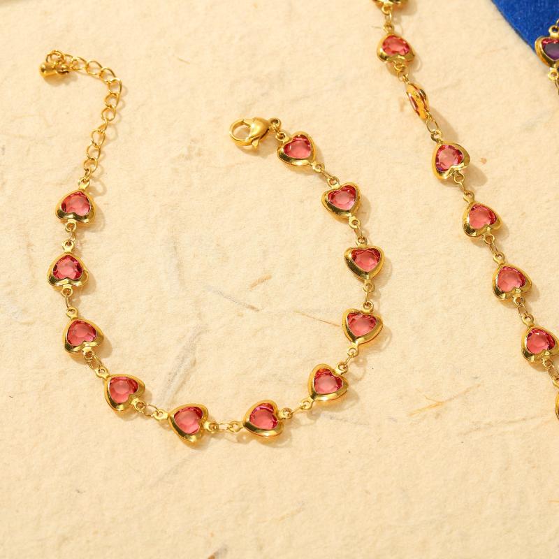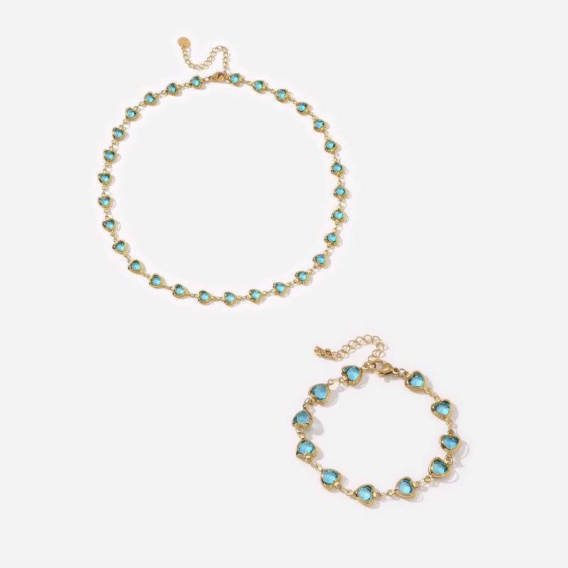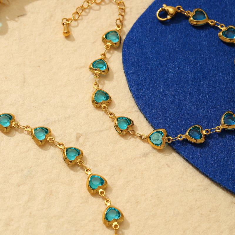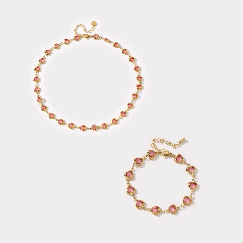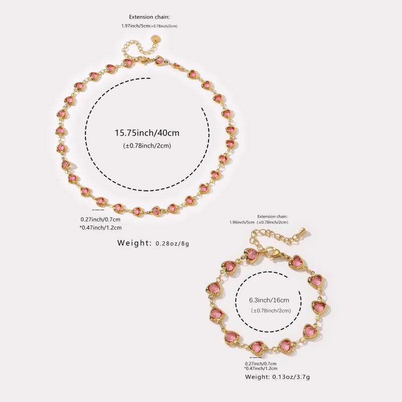 This 2pcs set includes a necklace and bracelet with multiple heart decorations. Made of hypoallergenic stainless steel, perfect for daily outings and vacation wear.