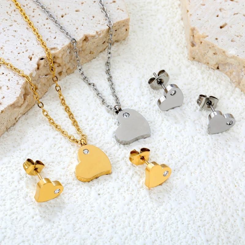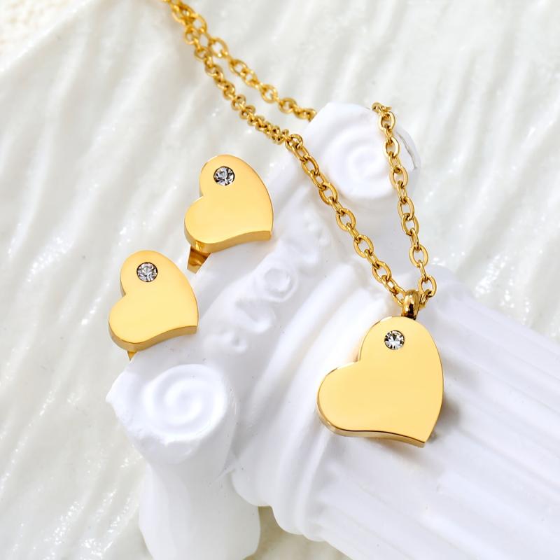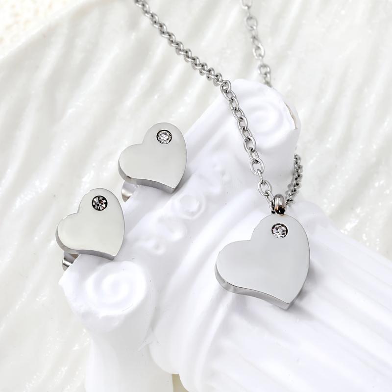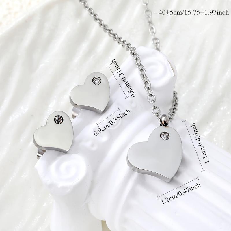 Stylish stainless steel jewelry set with heart-shaped synthetic rhinestones, perfect for parties, banquets, or as a gift.