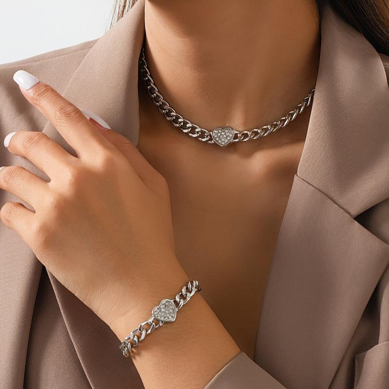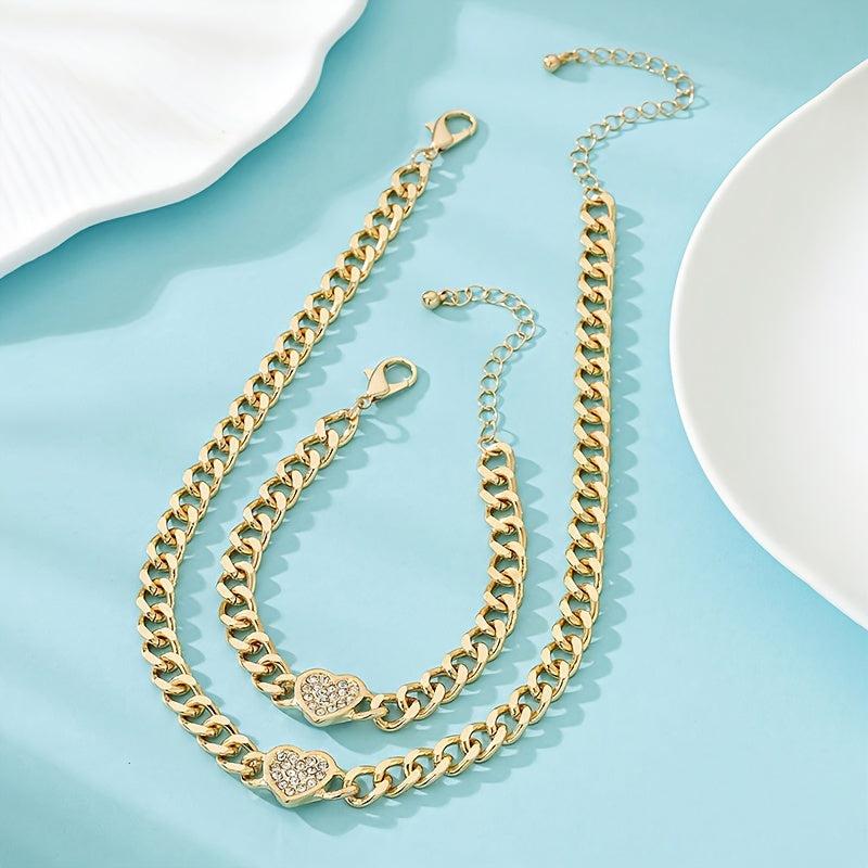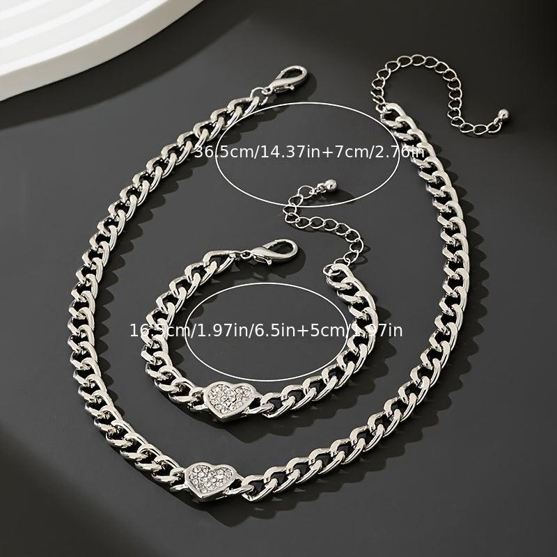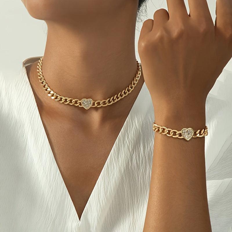 Elevate your style with this chic heart pendant necklace and bracelet set. Perfect for any occasion, this jewelry set adds a touch of elegance to your look.