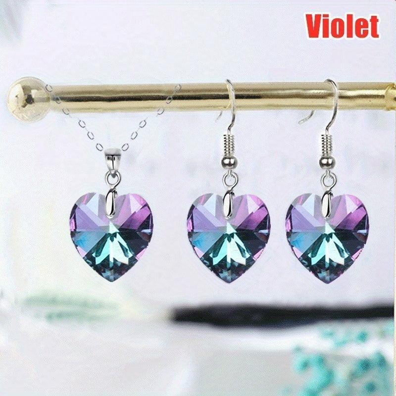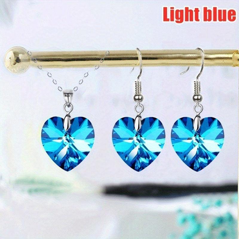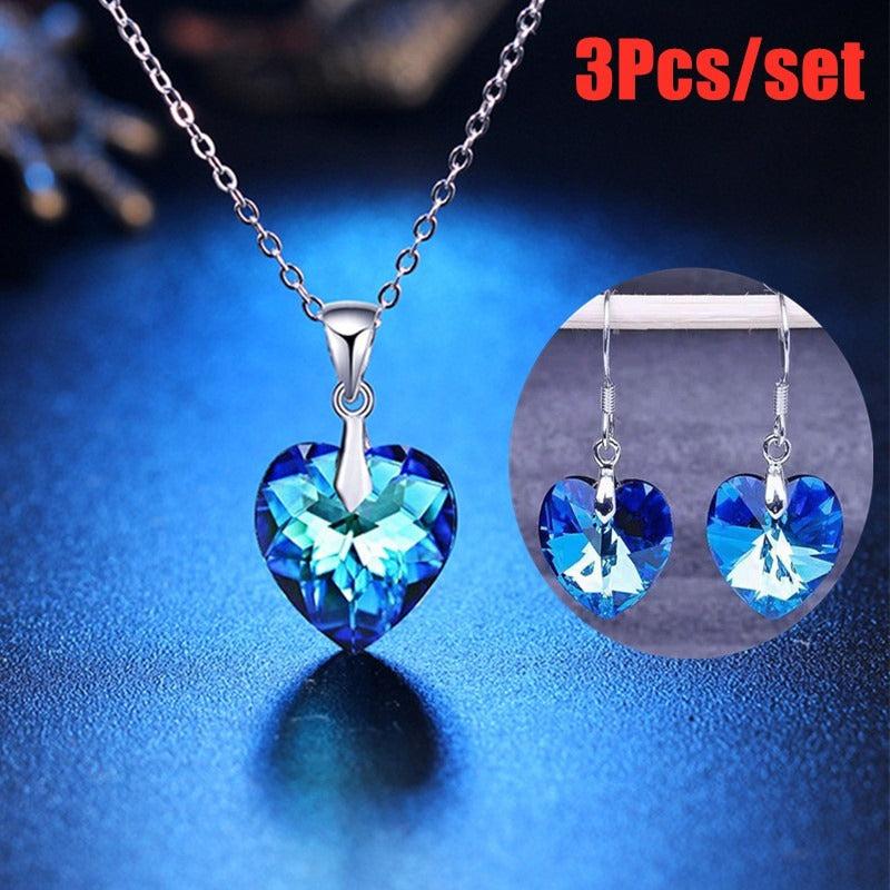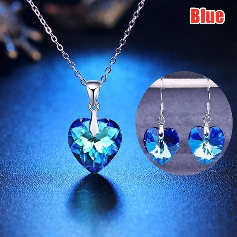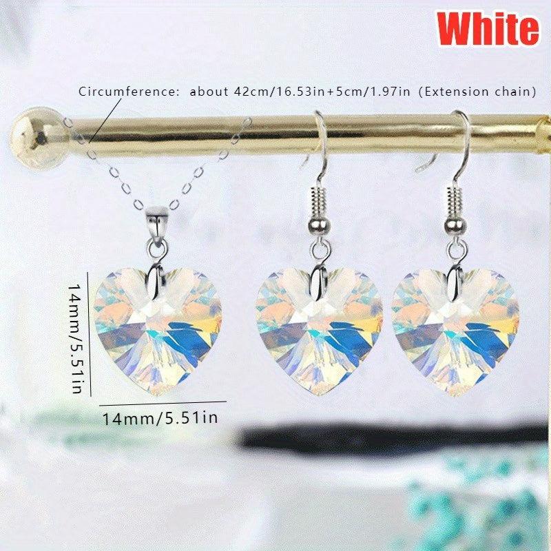 This romantic bridal jewelry set includes heart pendant necklace and earrings, perfect for weddings.