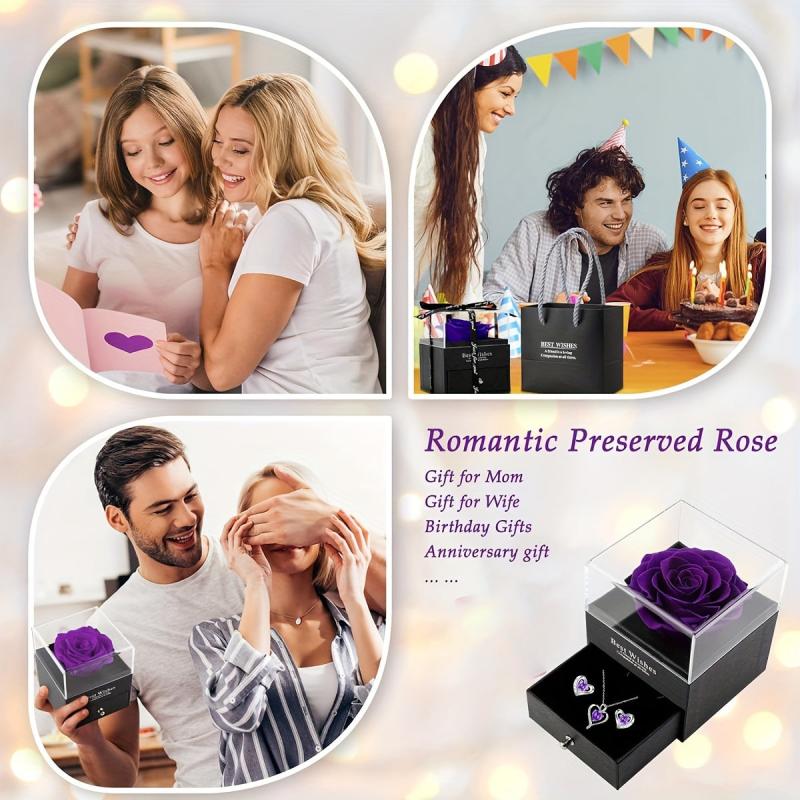 Beautiful heart-shaped rose jewelry set including necklace and earrings. A perfect gift for Mother's Day, anniversary, birthday, or wedding.