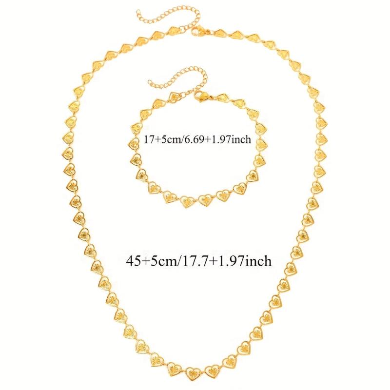 This elegant set includes a heart-shaped necklace and bracelet, perfect for banquets, weddings, parties, and daily wear. Made of high-quality stainless steel, this set is suitable for any occasion.