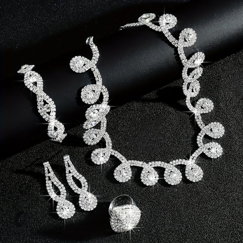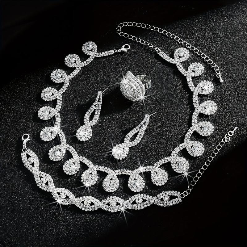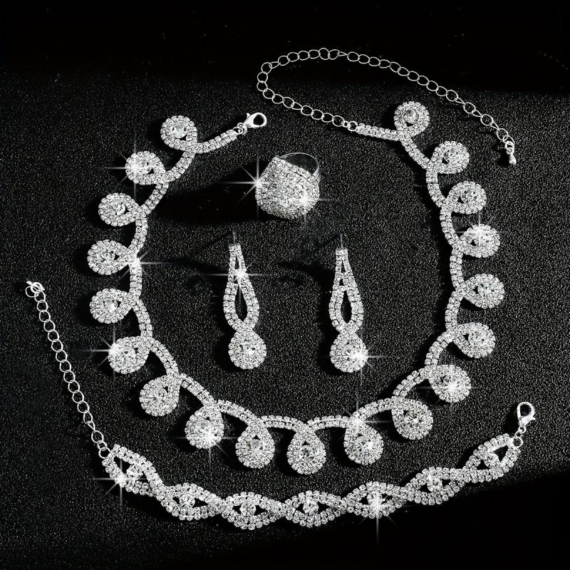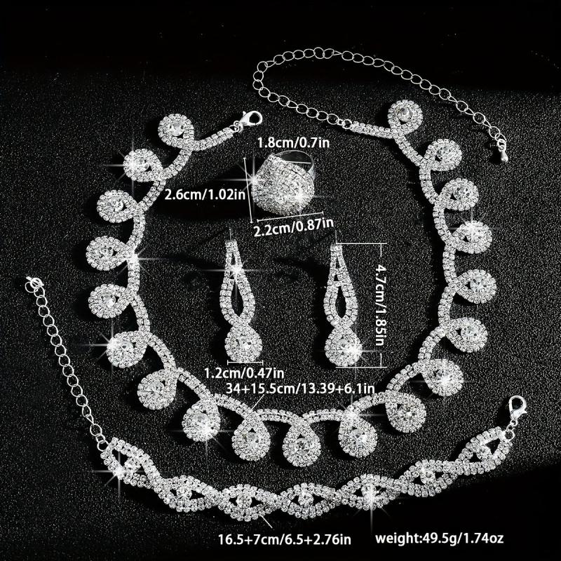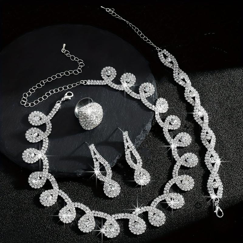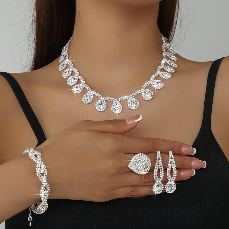 This four-piece set includes a flashing water drop necklace, bracelet, ring, and earrings, perfect for brides to be.
