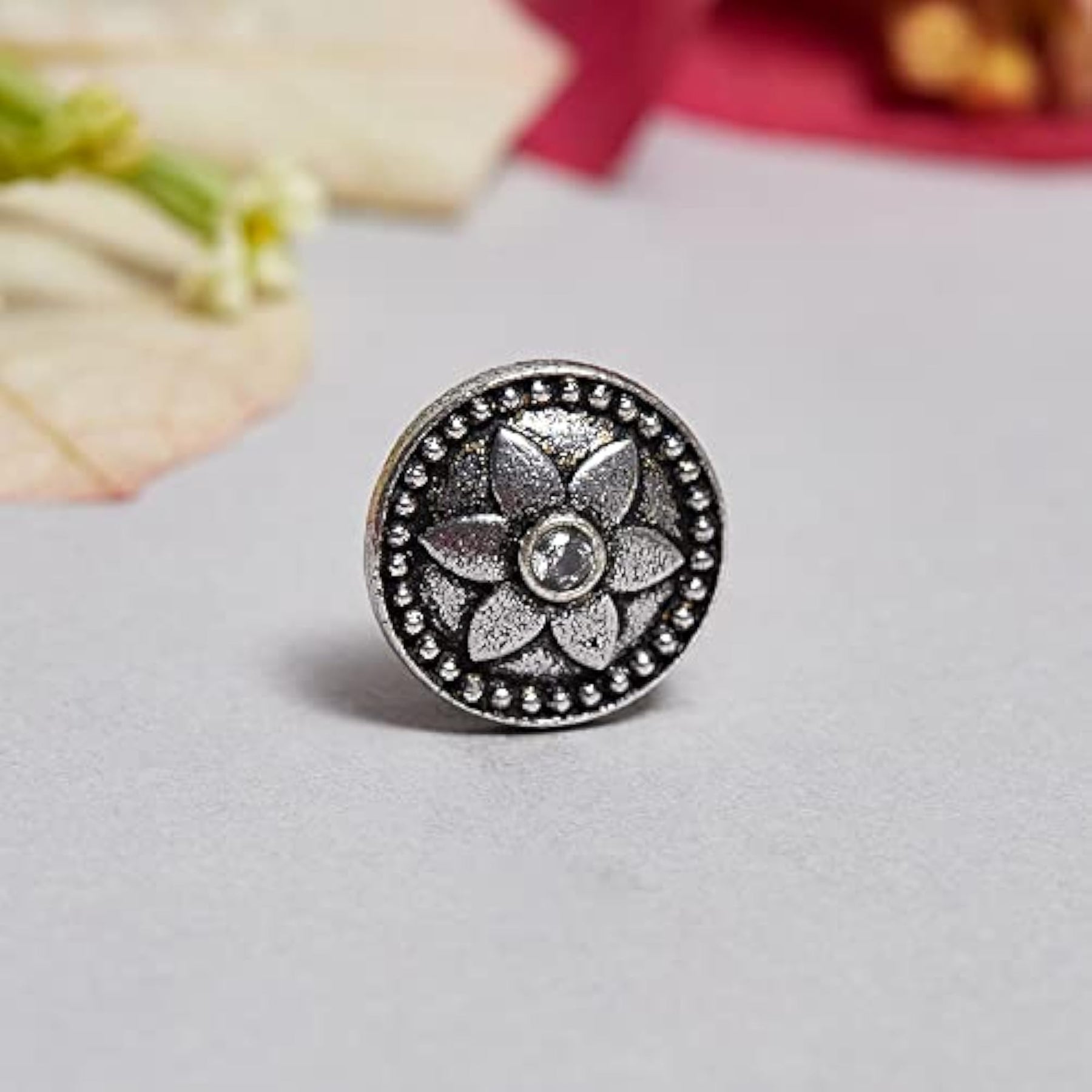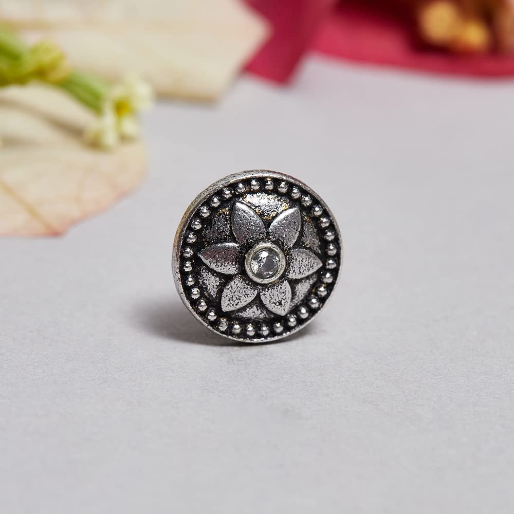 Elevate your style with this intricately designed oxidised nose pin featuring a beautiful floral motif
