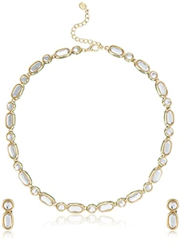 Elegant, unique style necklace set with polished plating. Suitable for traditional and modern outfits.