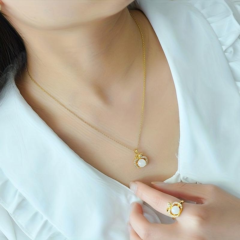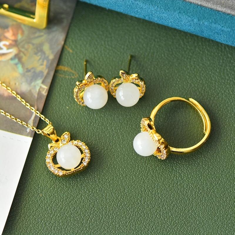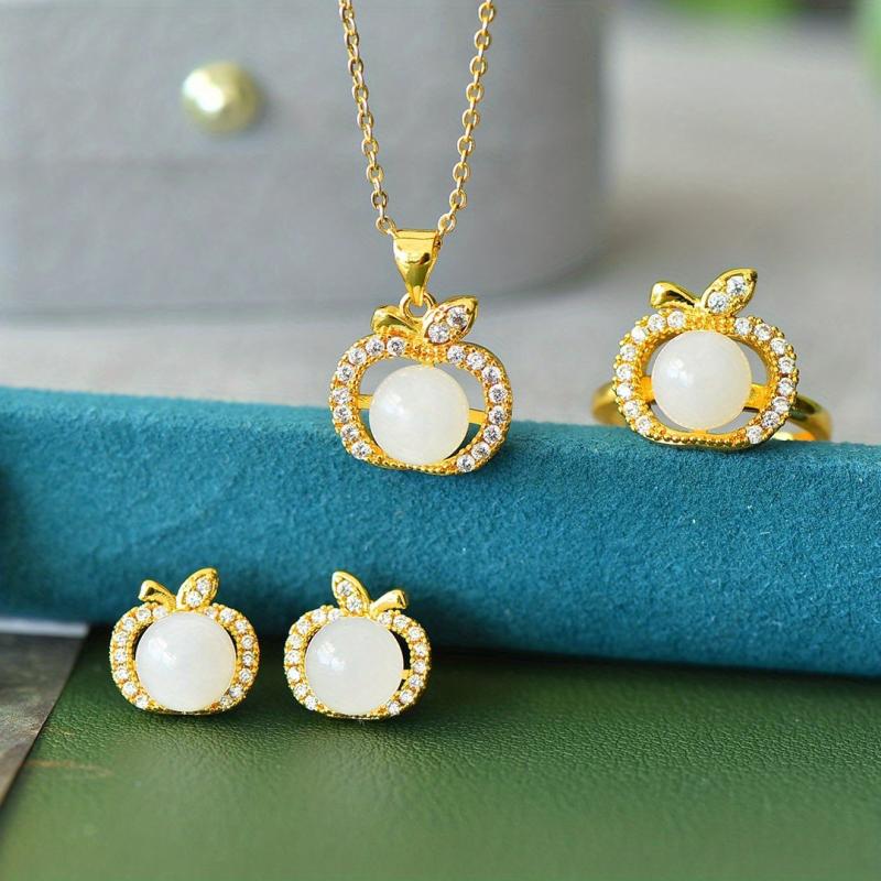 Elegant set featuring inlaid jade pieces on a field of jade, symbolizing peace and harmony. Includes a necklace and matching earrings.
