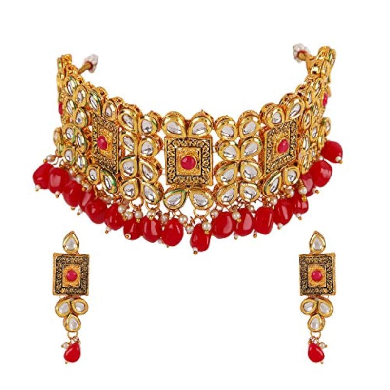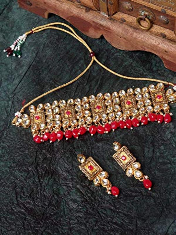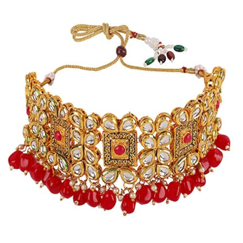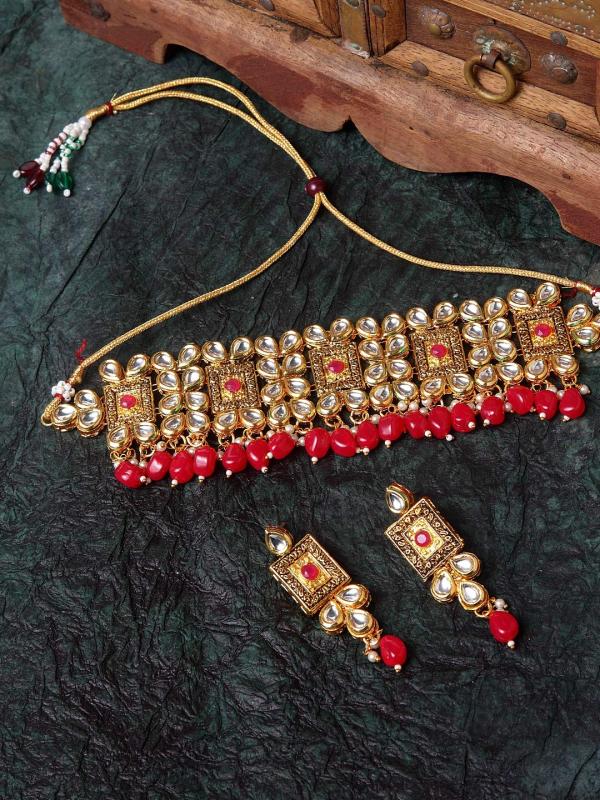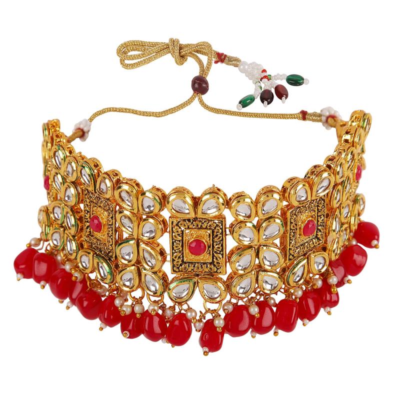 Elegant and traditional Kundan choker necklace set designed to add a touch of glamour to any ethnic attire.