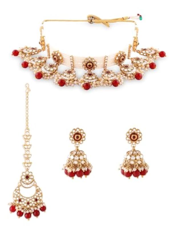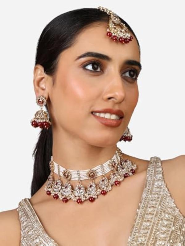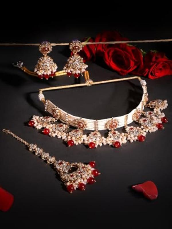 Elegant choker necklace set with stones, beads, and kundan detailing. Perfect for special occasions and traditional events.