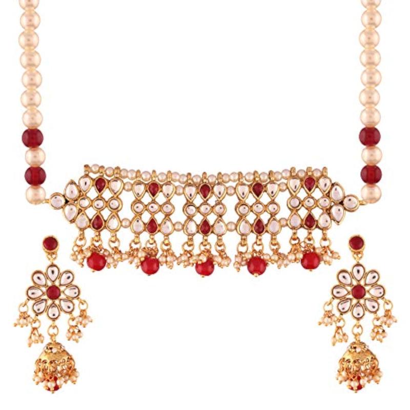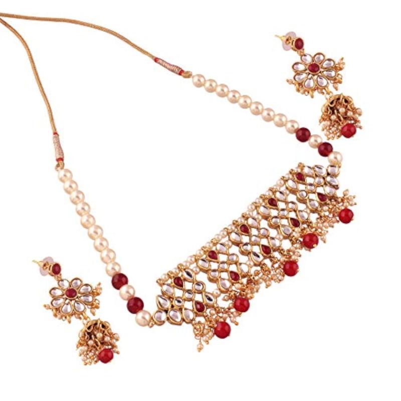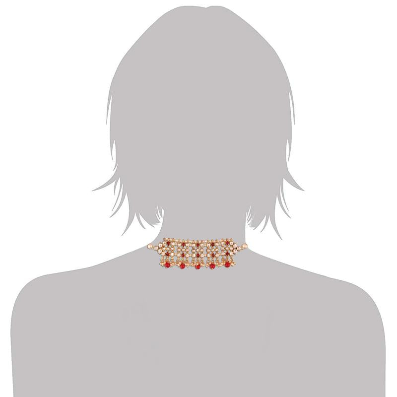 Elegant choker necklace set featuring Kundan and pearl design. Perfect for formal occasions.