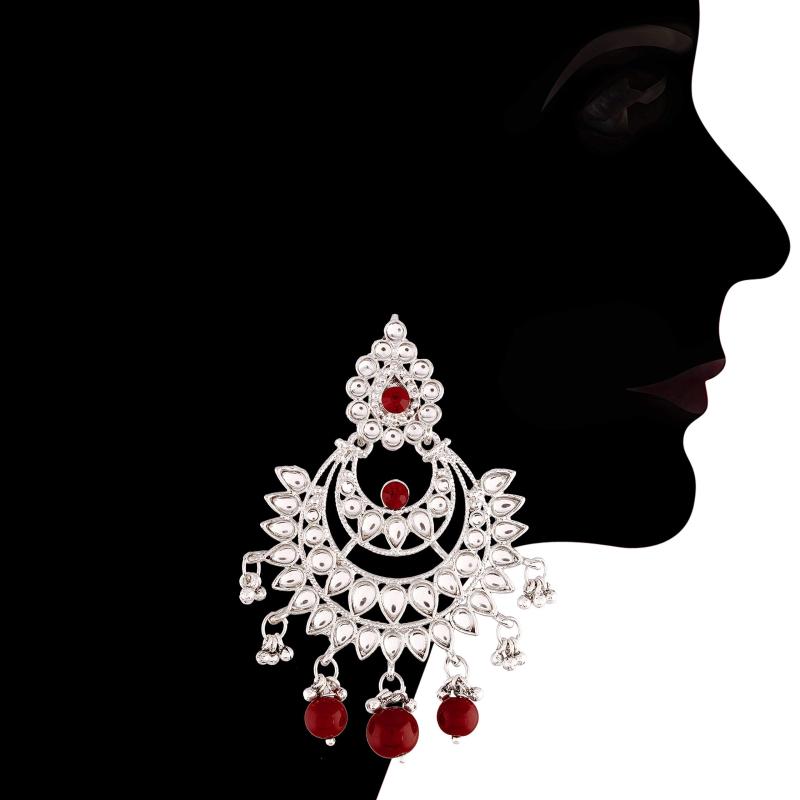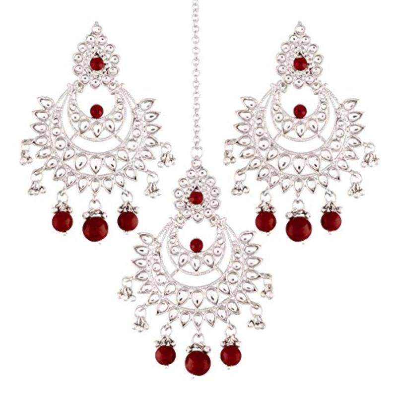 Complete your ethnic look with this traditional Kundan pearl earrings and maang tikka set. Perfect for special occasions and weddings.