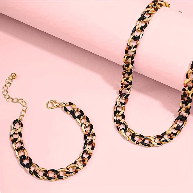 This versatile jewelry set includes a sexy leopard print necklace and bracelet combo made of KC golden plated alloy. Perfect for daily wear, parties, and vacations.