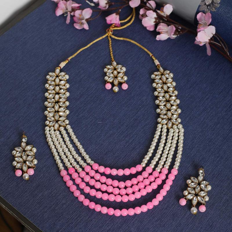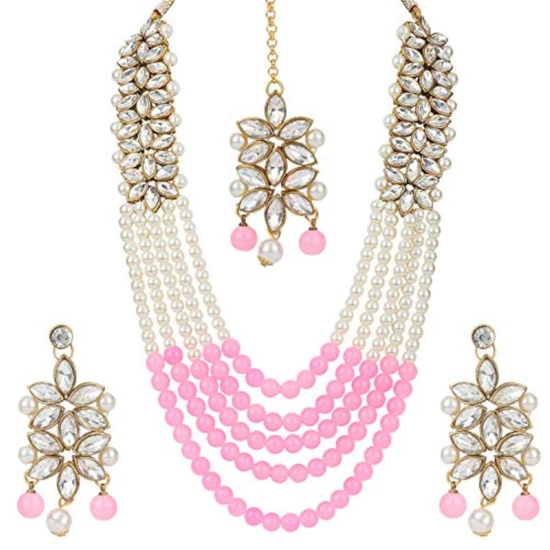 Elegant long pearl necklace and earrings set suitable for formal events.