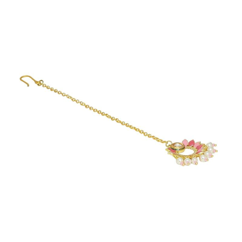 Enhance your traditional look with this beautiful floral maang tika that adds a touch of elegance and grace to your outfit.