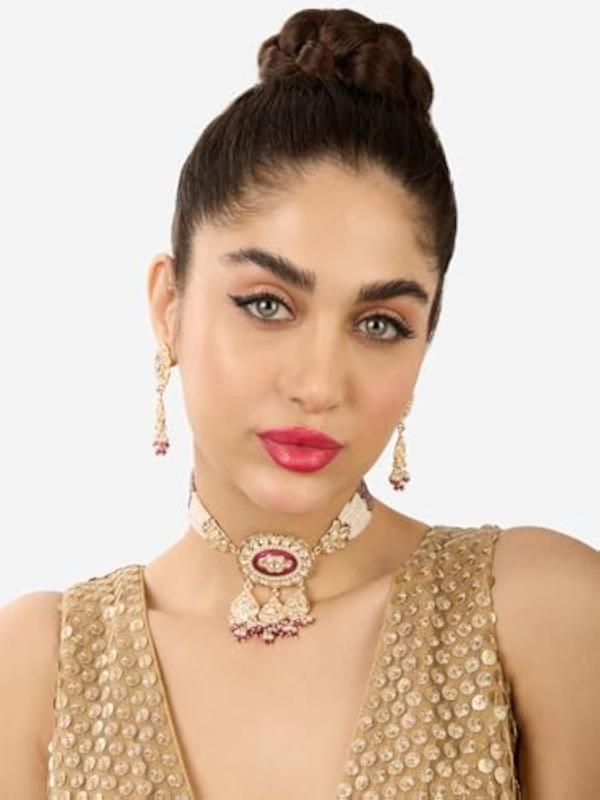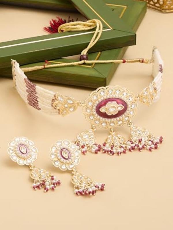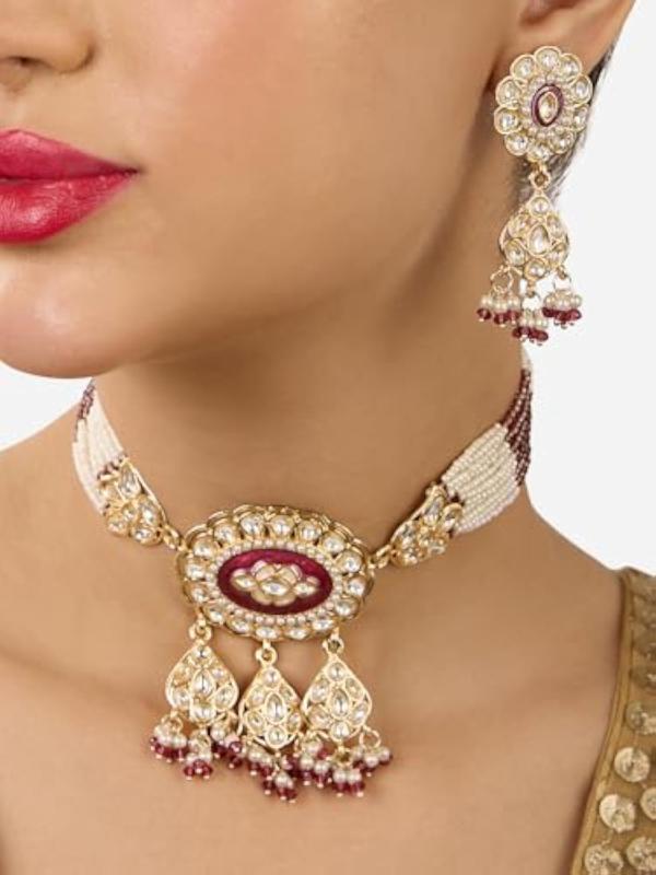 Elegant Meenakari multistrand beaded choker necklace with matching earrings. A perfect addition to your ethnic jewelry collection.