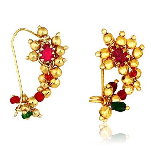 Enhance your bridal look with this stunning Maharashtrian wedding nose pin/nath combo. Includes 2 nose rings for a complete traditional touch.